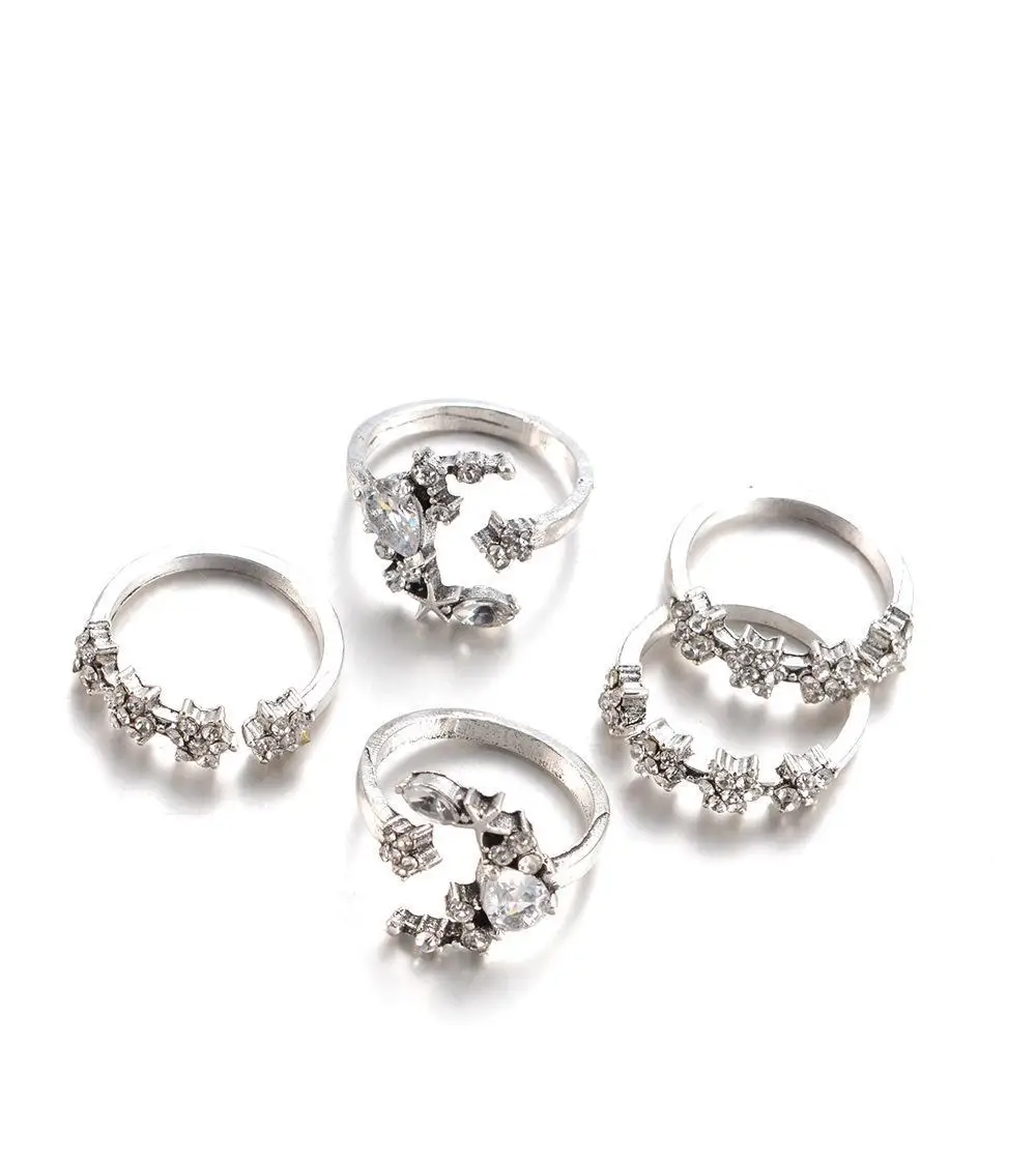 Новинка набор колец Стразы в богемном стиле из 5 предметов женское кольцо со звездой Луной и кристаллами Готические свадебные кольца ювелирные изделия кольца для женщин оптовая продажа