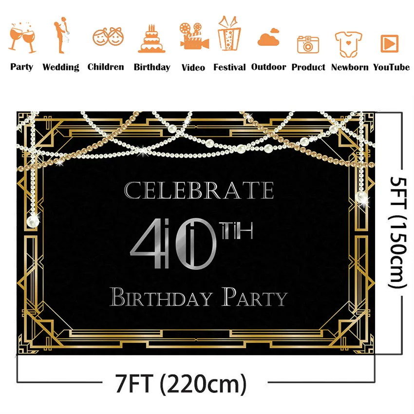 Празднование 40-го дня рождения Декор для вечерние черный белый жемчуг фон для фотостудии золотые металлические принадлежности