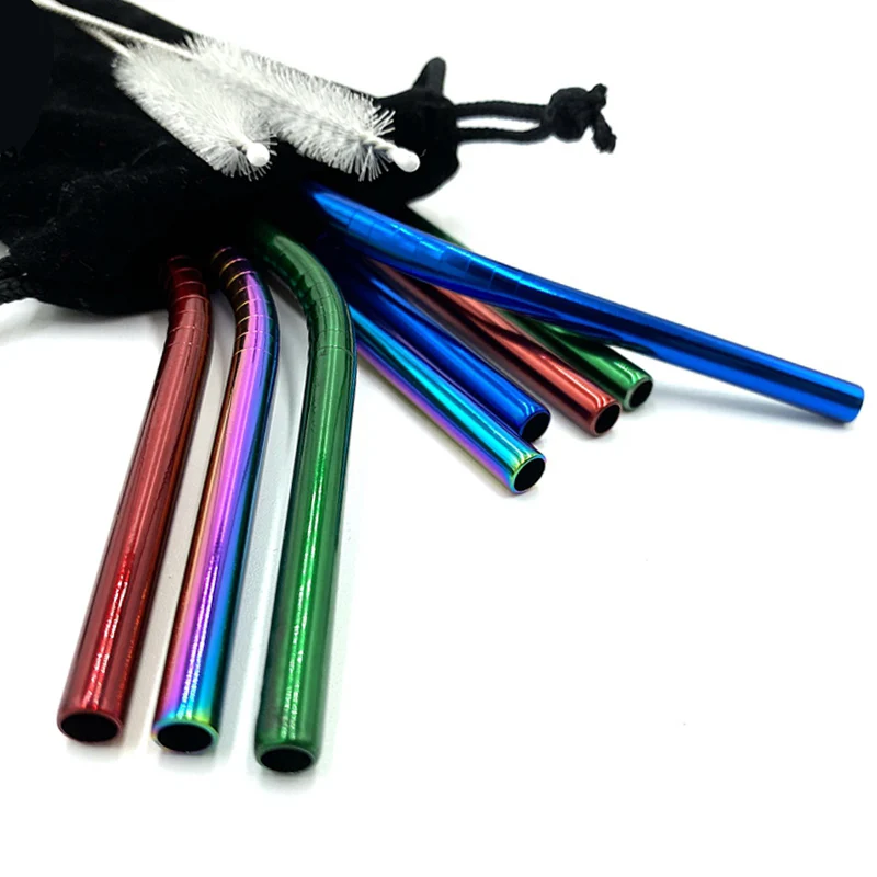 8 шт цветная многоразовая Питьевая солома высокого качества 304 нержавеющая сталь металлическая соломинка с чистящей щеткой для кружек бар посуда для напитков