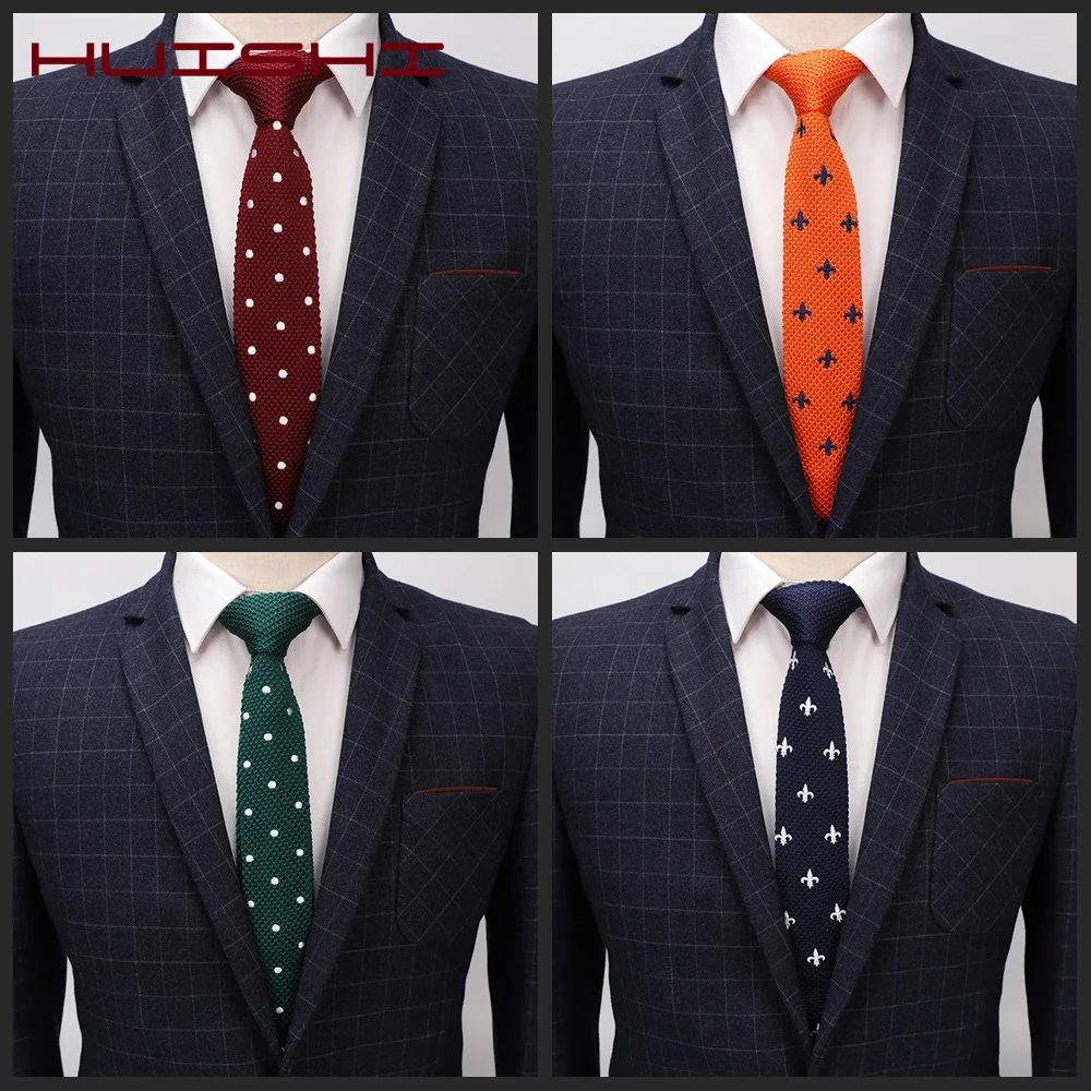 Галстук HUISHI мужской, вязаный, однотонный, зеленый, синий, черный