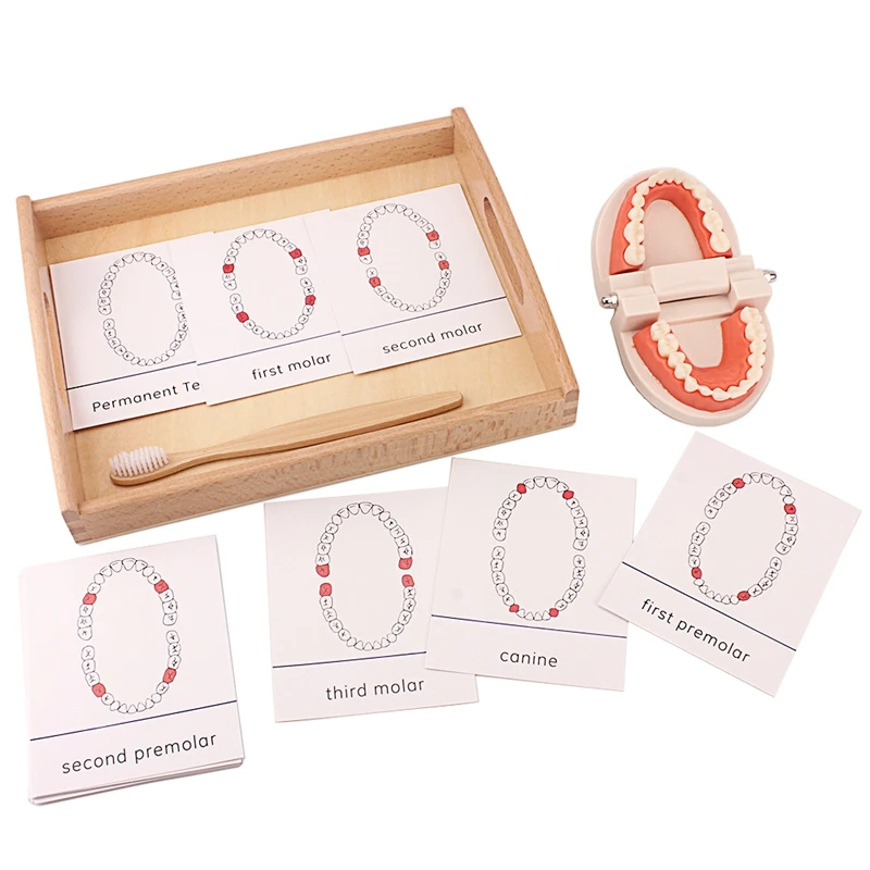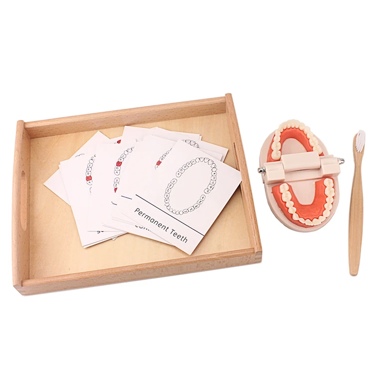 Учебные пособия по методике Монтессори, искусственная чистка зубов, игрушка с карточками, тренировка жизненных навыков, игрушки, зубная щетка с деревянным подносом