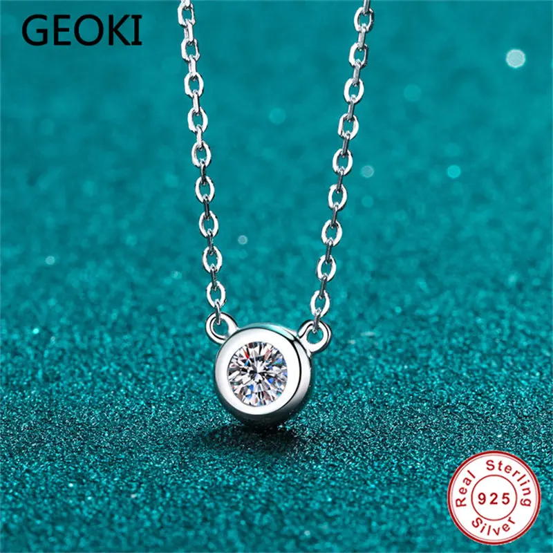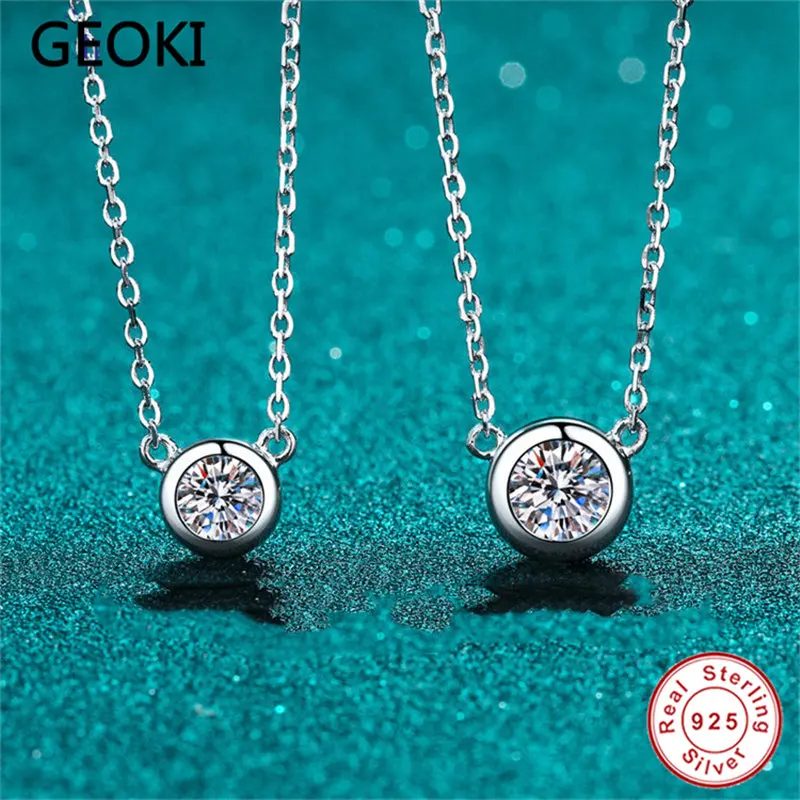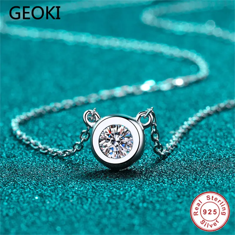 Geoki прошел испытание алмаза Трендовое серебро 925 пробы круглая идеальная огранка 0,5-1 ct VVS1 Moissanite Cat Подвеска Ожерелье для женщин