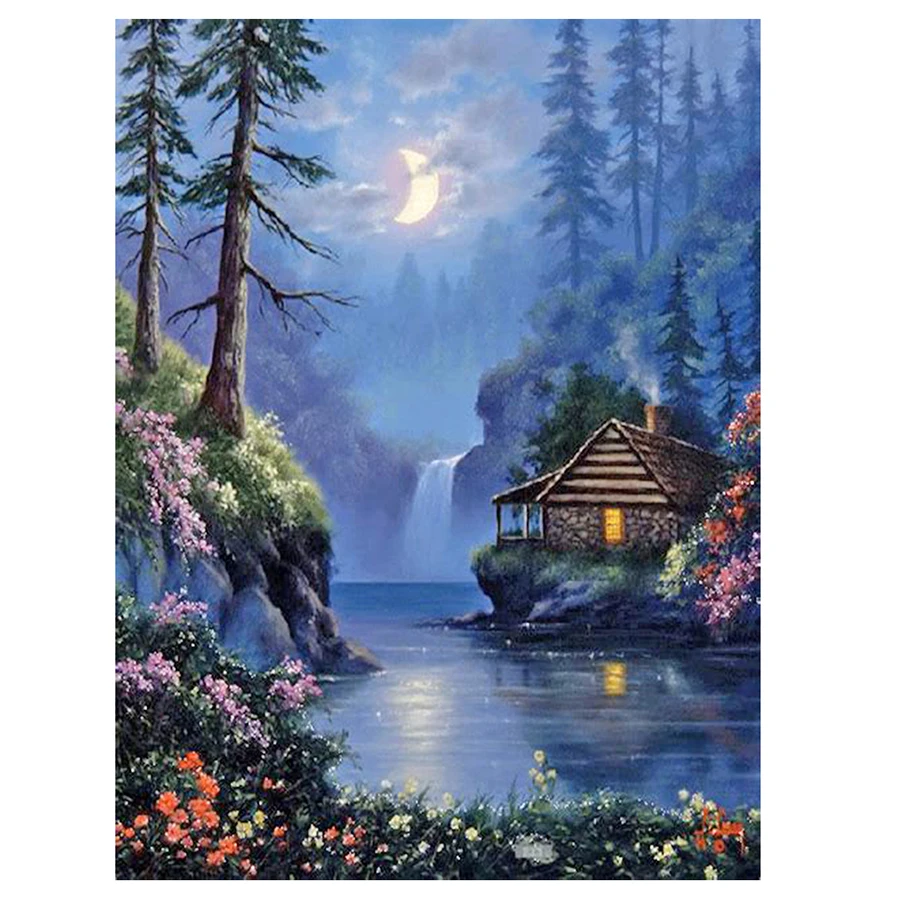 Алмазная живопись 5D "сделай сам", алмазная вышивка, пейзаж, распродажа, домик в лесу, Алмазная мозаика, Набор для вышивки крестом, домашний декор