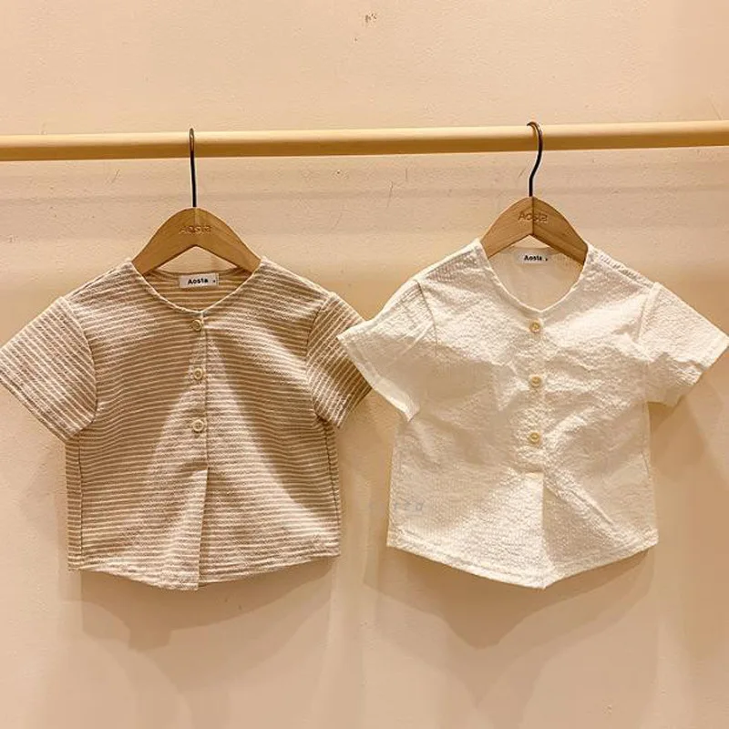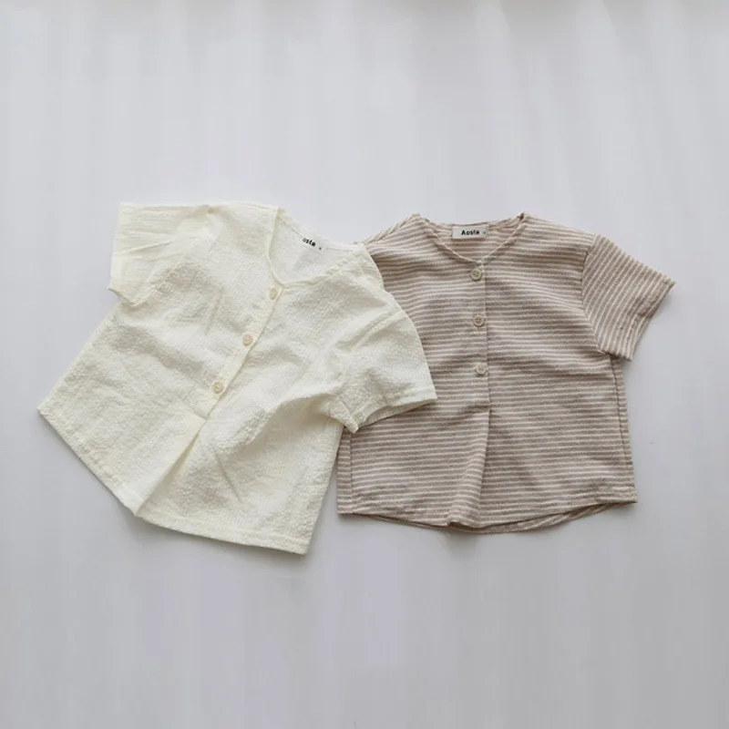 Детская одежда в Корейском стиле, летняя дышащая рубашка из хлопка и льна, универсальная Детская рубашка с короткими рукавами, 2020