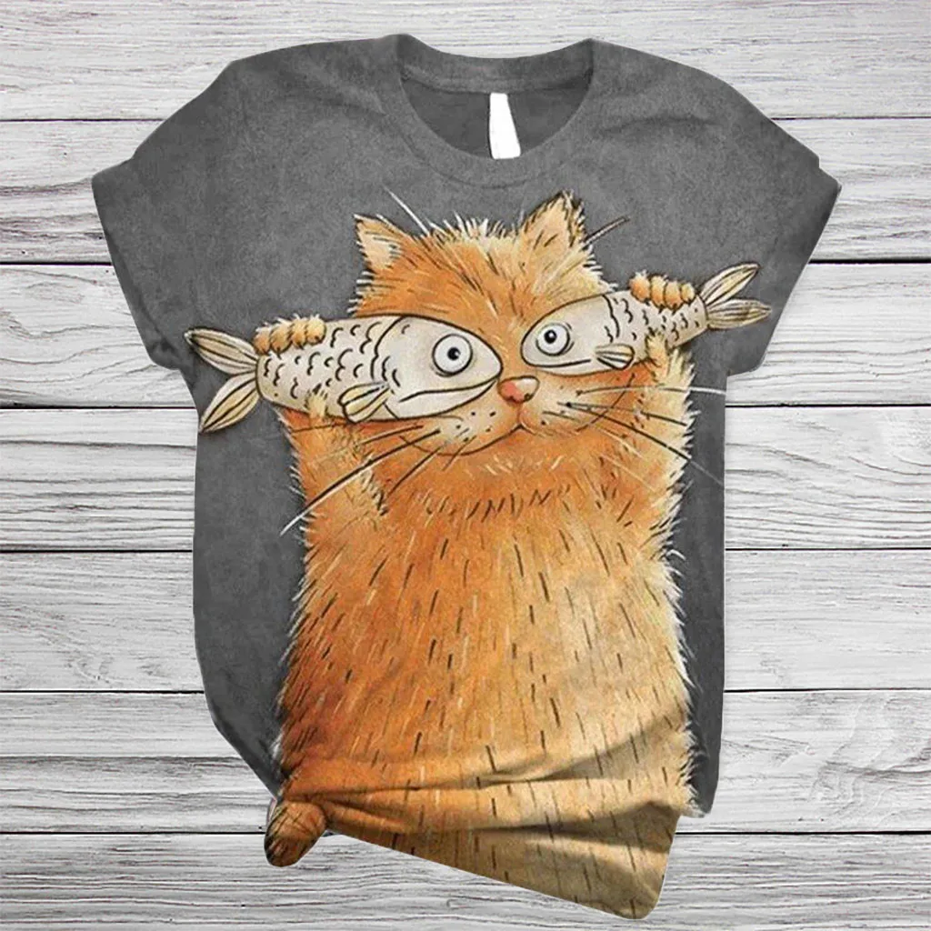 Размера плюс футболка для женщин летние топы с короткими рукавами и 3D животного с принтом кота; О до образный вырез; Футболка Harajuku футболка уличная Camiseta