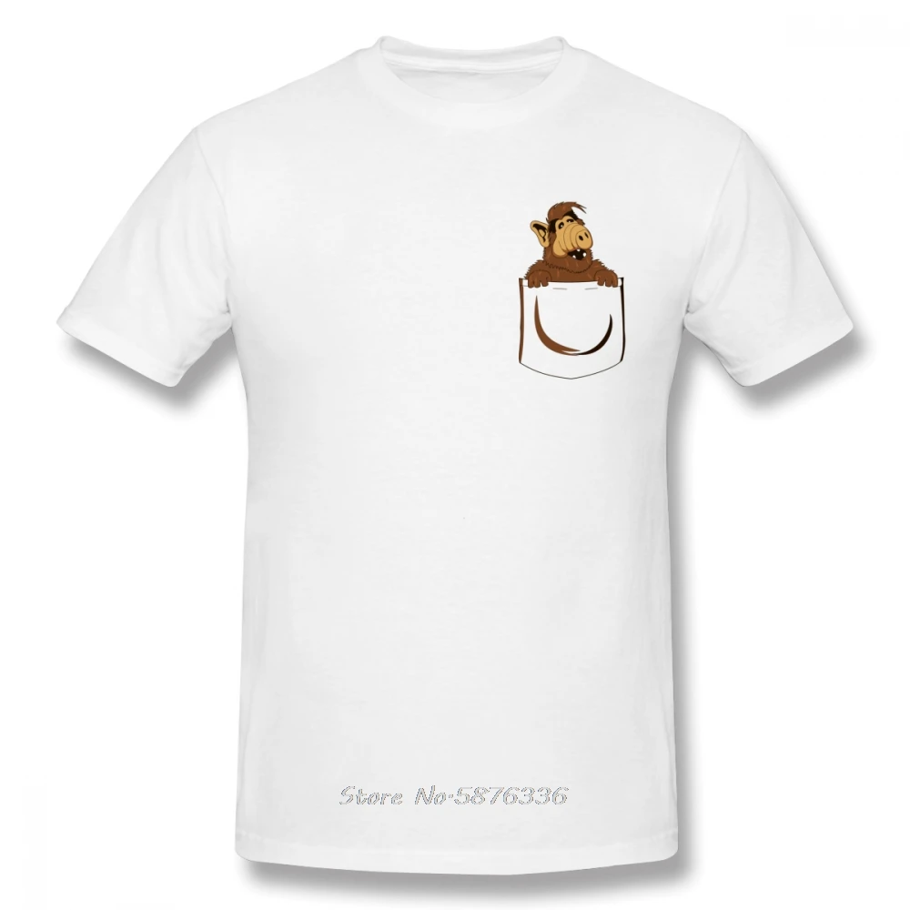 Забавная Мужская футболка с карманом с Альфом, стильная хипстерская футболка из чистого хлопка с уникальным дизайном, футболка в виде инопланетянина в жизни, дизайнерская уличная одежда в стиле панк для парней