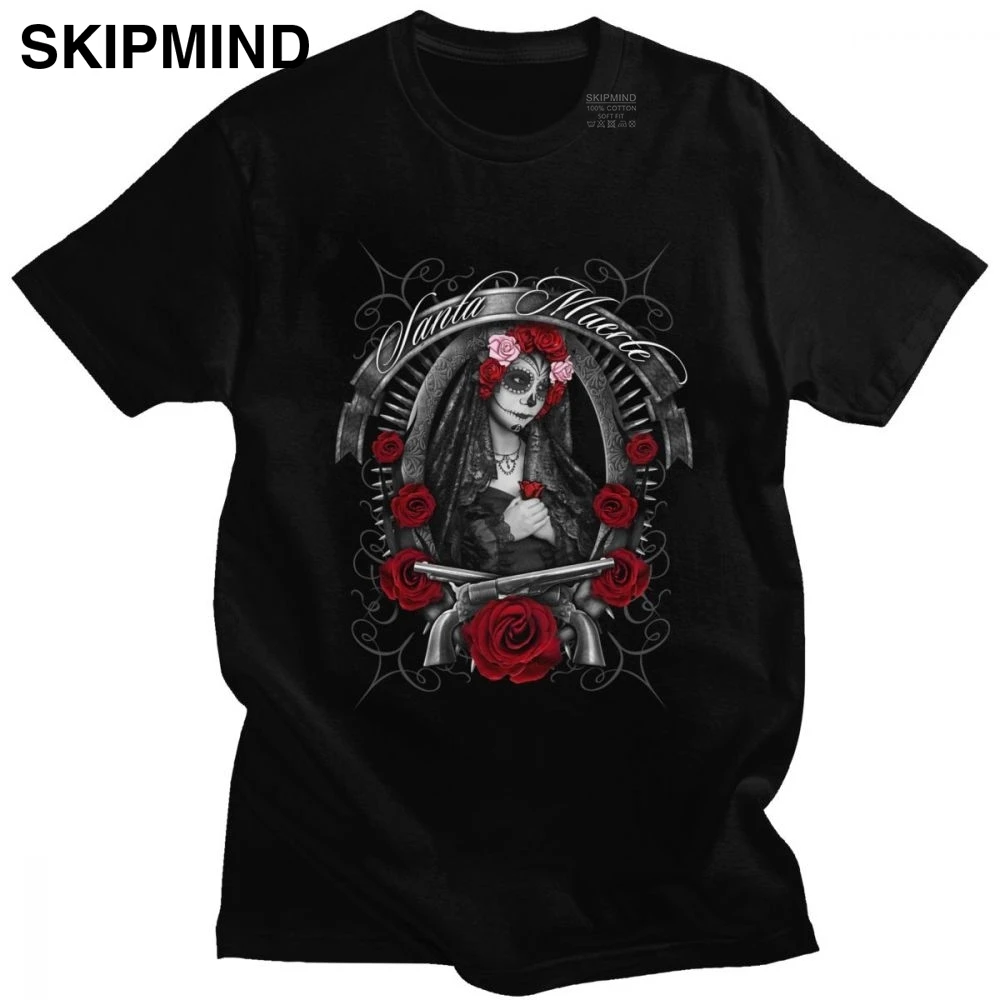 Santa Muerte 13 футболки Для мужчин хлопок леди Святой смерти футбо...