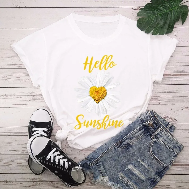 Женская футболка с коротким рукавом и круглым вырезом, размеры до 5XL