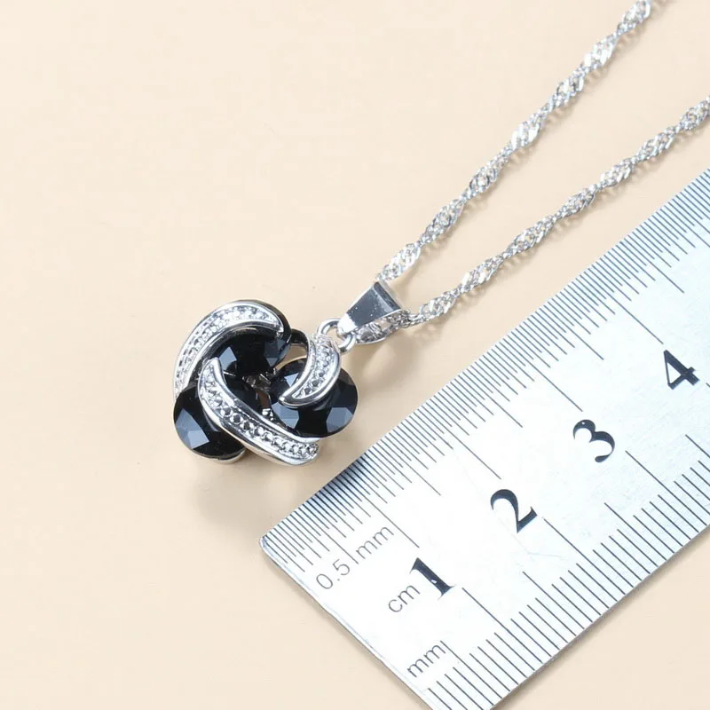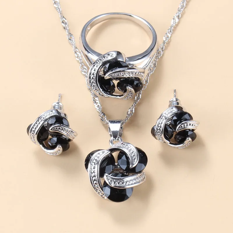 Набор украшений для женщин, аксессуары для свадьбы, серебро, черный кубический цирконий, серьги, колье и кольцо, 11 цветов