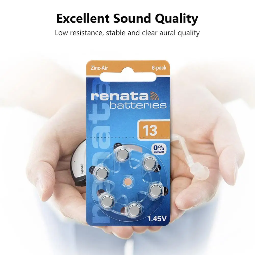 Слуховой аппарат батареи Размер 13 za Renata, упаковка из 6, оранжевый Tab PR48 1,45 V тип A13 e13 AU-6nh цинк воздушный аккумулятор p13 с футляром чехол