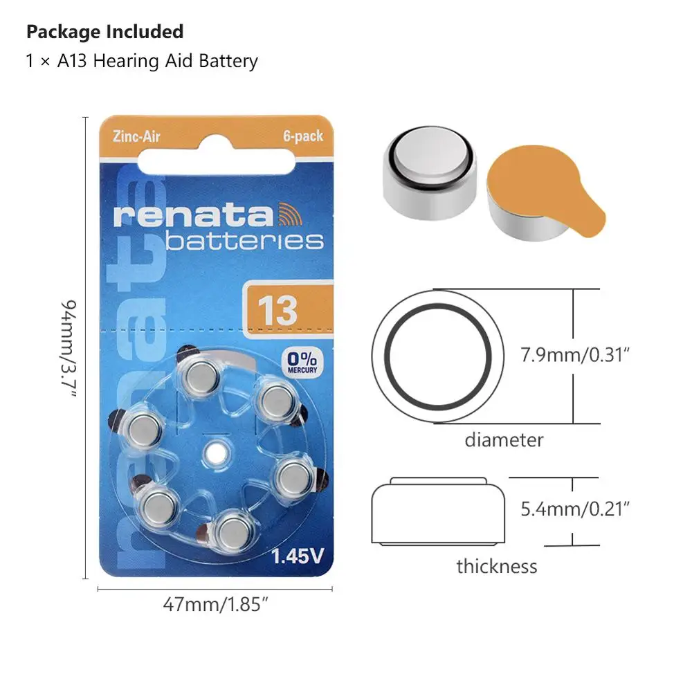 【Широко Совместимо-свежие, не содержащие ртуть батареи-подходят для всех современных слуховых устройств, использующих батареи размером 13. Оптимизирован для беспроводных устройств, устройств Bluetooth и MFIs.
