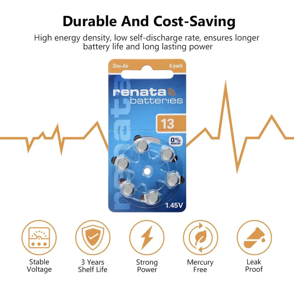 【Широко Совместимо-свежие, не содержащие ртуть батареи-подходят для всех современных слуховых устройств, использующих батареи размером 13. Оптимизирован для беспроводных устройств, устройств Bluetooth и MFIs.