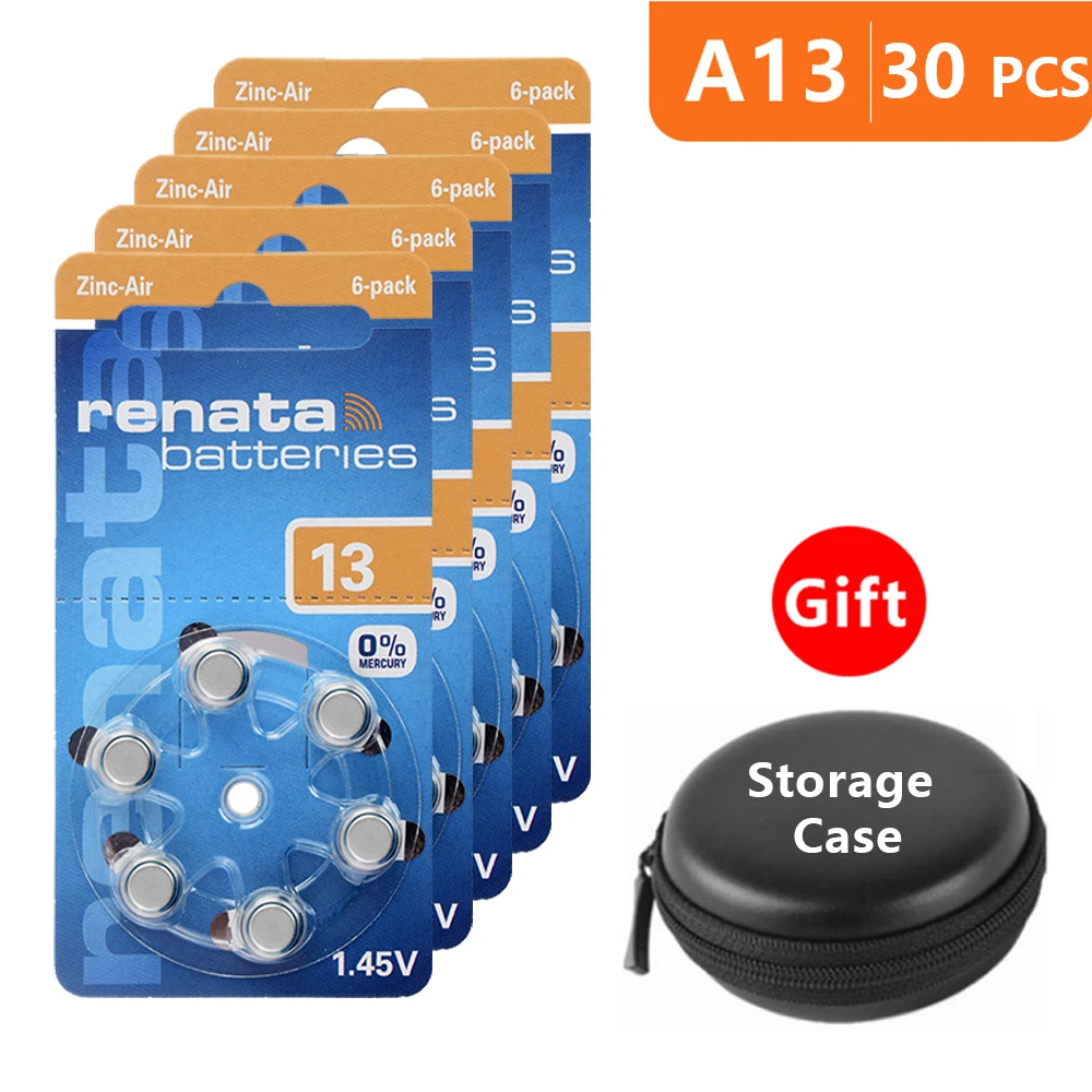 Аккумуляторы для слухового аппарата, размер 13 za Renata, упаковка 30, оранжевый Tab PR48, 1,45 в, тип A13, фотоцинковый аккумулятор p13 с чехлом
