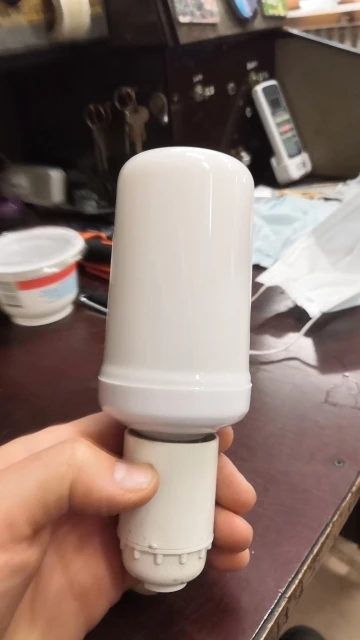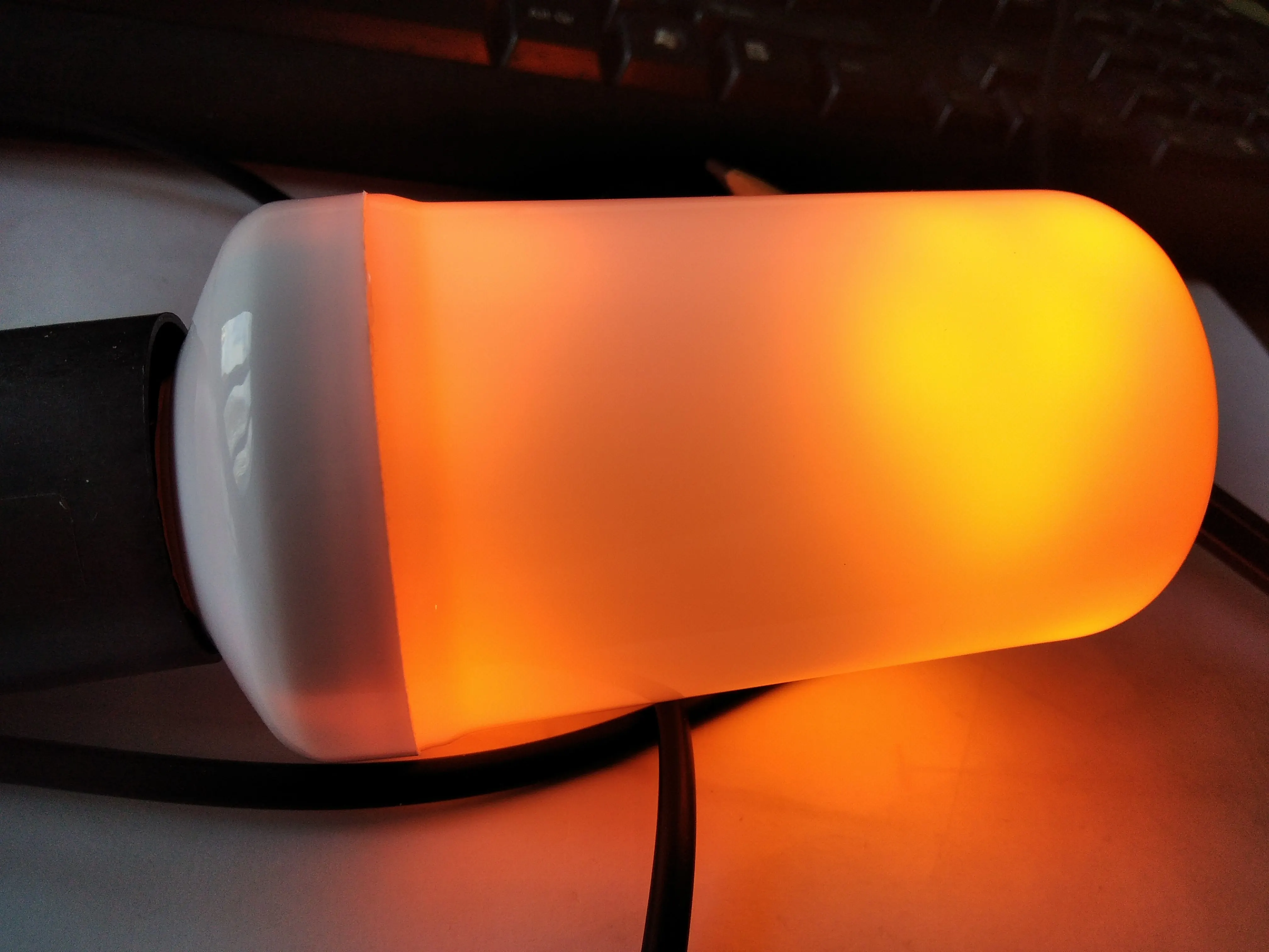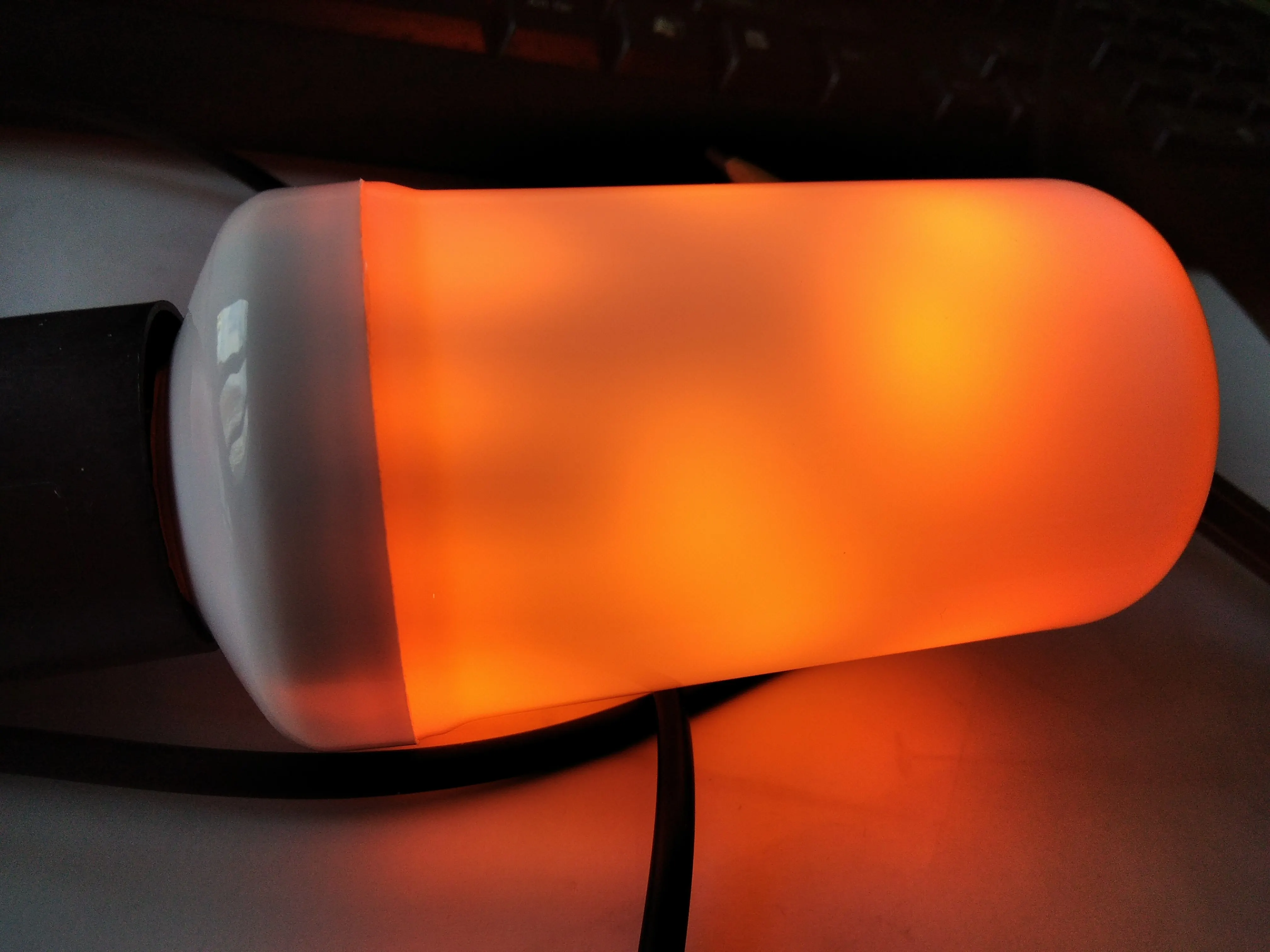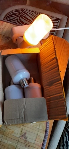 Пришла с расщелкнутой колбой, не страшно, защелкнул, но, видимо, при перевозке могут и повредить. Работает, издалека, если не видно источник света, и правда похоже на огонь, в общем неплохая лампа, остался доволен