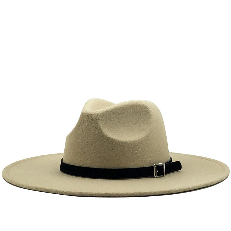 Шляпа с широкими полями для мужчин и женщин, простая церковная Панама Дерби, однотонная фетровая Панама, джазовая шапка из смешанной искусственной шерсти