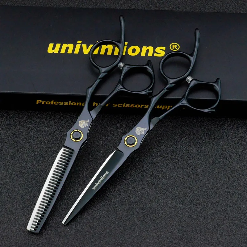 Univinlions 6-дюймовые подшипниковые винтовые ножницы для волос, черный цвет, парикмахерские ножницы для филировки, парикмахерский набор для парикмахера