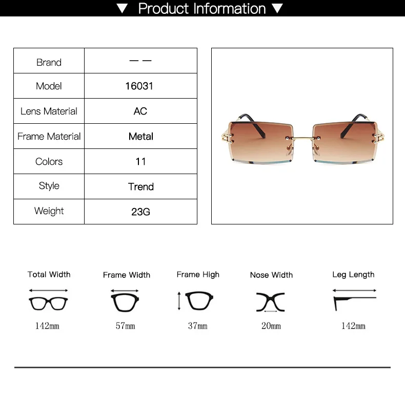 Номер моделиMN16031-Fashion Rimless Sunglasses Women