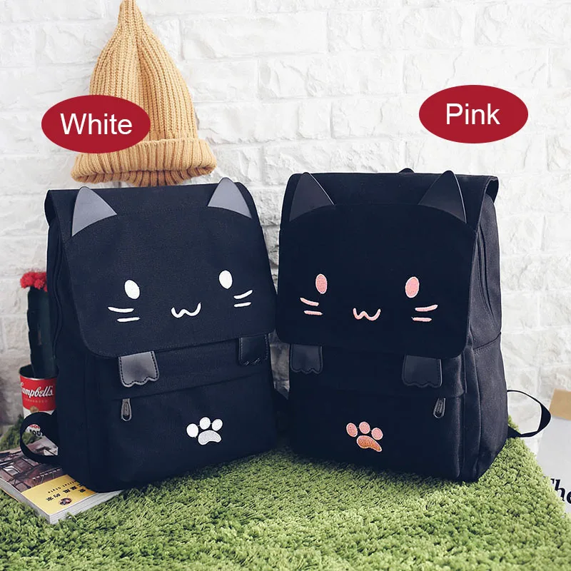 Новый женский рюкзак из парусины с милым котом, дорожный рюкзак, школьные сумки для студентов, Kawaii Bookbags 40x30x11 см
