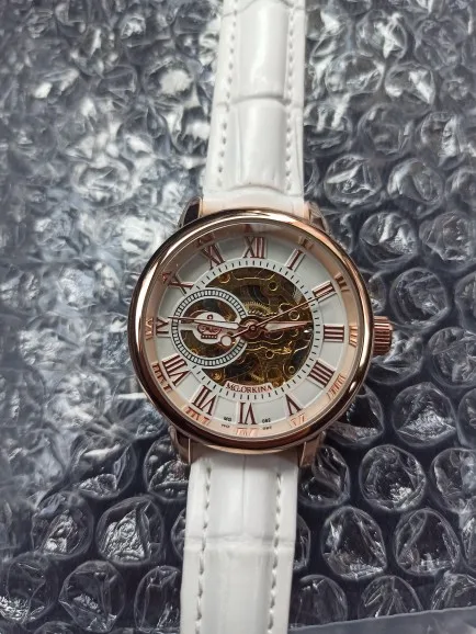 красивые часы,пришли быстро, упакованы тщательно. т.к они механические заводить надо и часто ,быстро кончается завод. ещё не поняла на сколько точно идут. немного тяжеловатые на руке. мне понравились,напоминают скелетоны,внешне качественные .