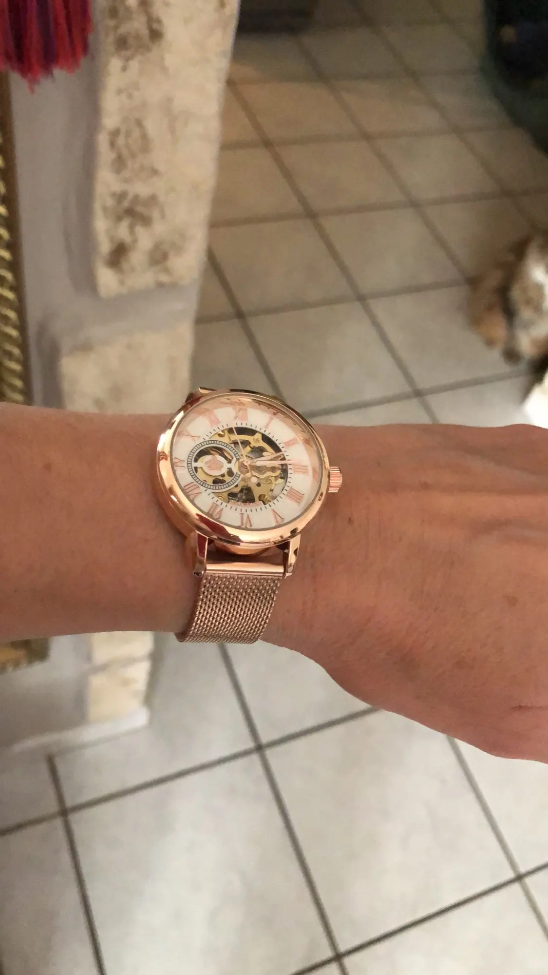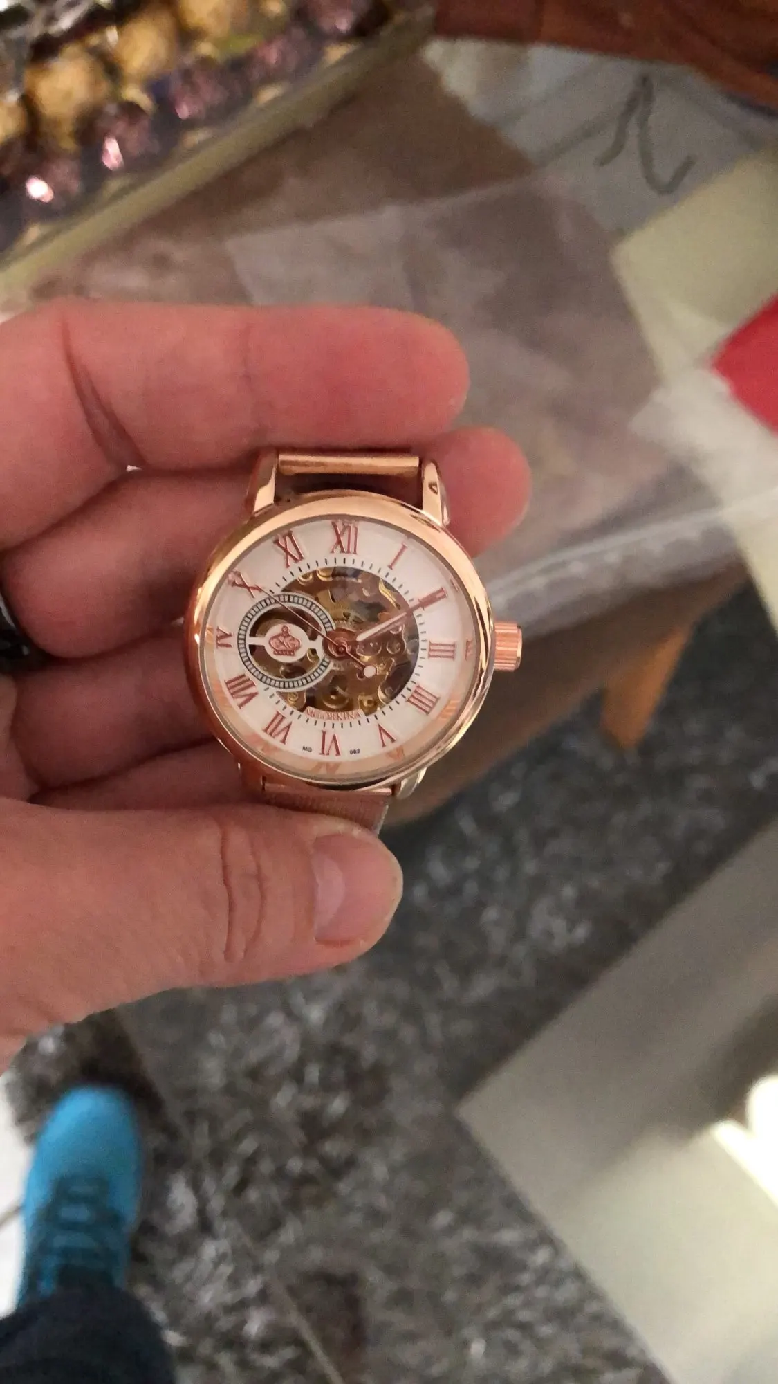 Очень красивые часы прекрасно соответствуют описанию. Механизм хорошо виден. Это действительно хороший предмет, который меня очень тщательно упаковал. Отличный продавец. Спасибо!