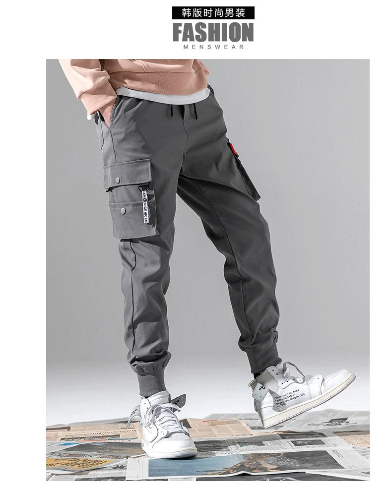 Штаны-карго HOUZHOU мужские рабочие, свободные штаны в Корейском ст...