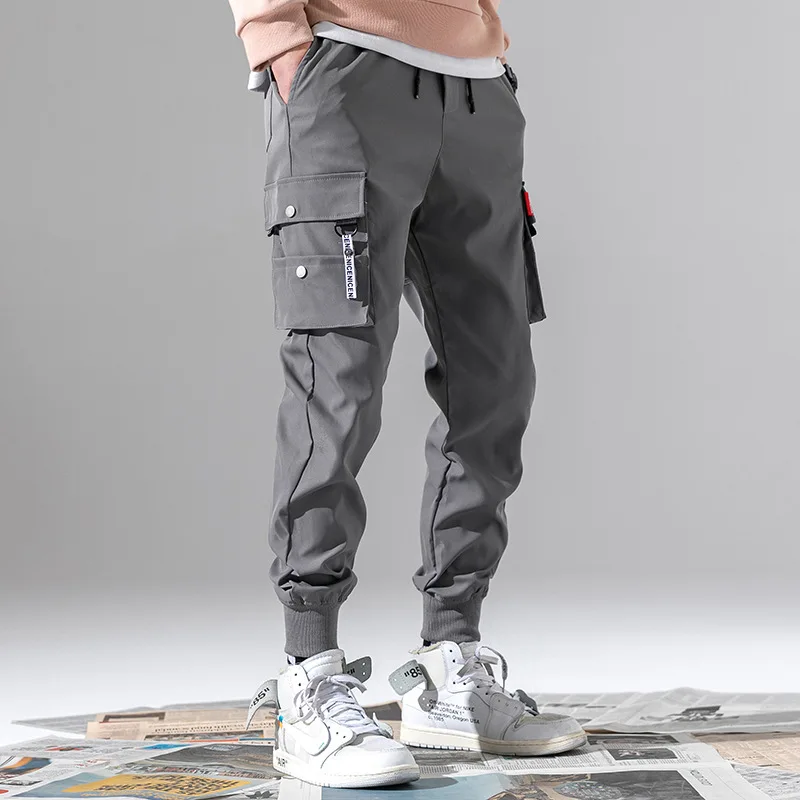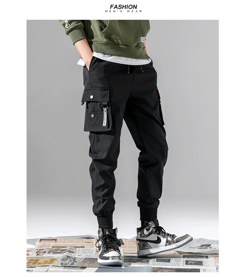 Брюки-карго в стиле хип-хоп для мальчиков, мужские брюки-султанки со множеством карманов, панковские повседневные штаны, Джоггеры для танцев, черные