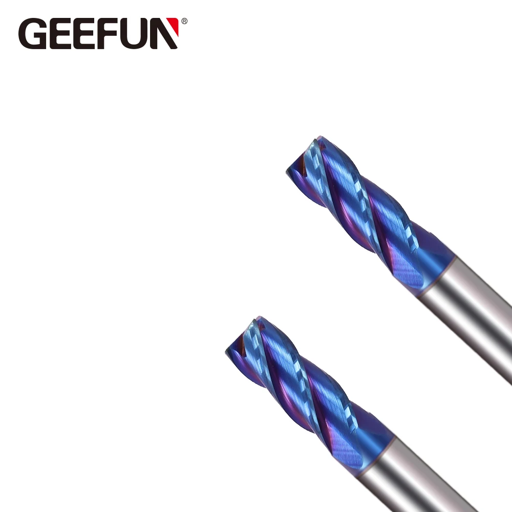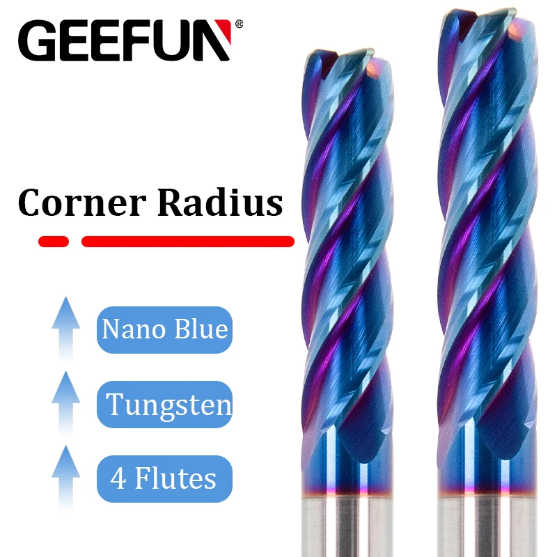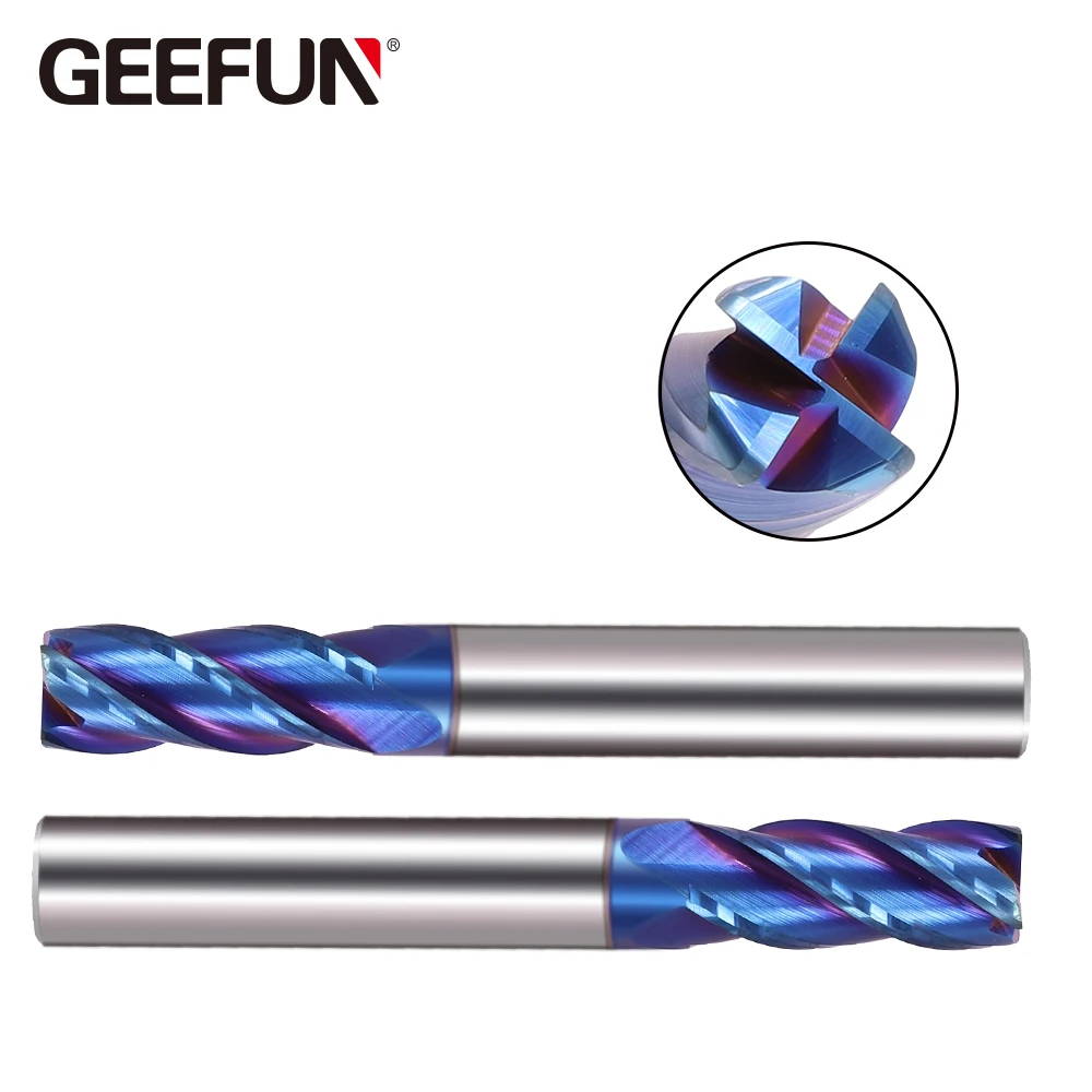 Твердосплавные Угловые концевые фрезы GEEGUN 4T, Фрезы с ЧПУ, финишная резка, нанопокрытие 4F, инструменты с ЧПУ с голубым покрытием, концевые фрезы HRC65