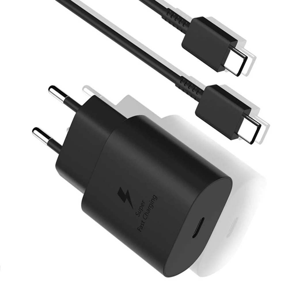 Особенности:-Samsung Galaxy S20 супер быстрое зарядное устройство-- Максимальная выходная мощность: 25 Вт-Штепсельная вилка стандарта ЕС/США-Кабель USB Type-C-Type-C-Товар отправляется без коробки-Черный/белый