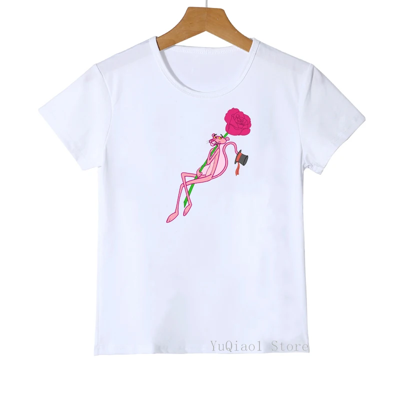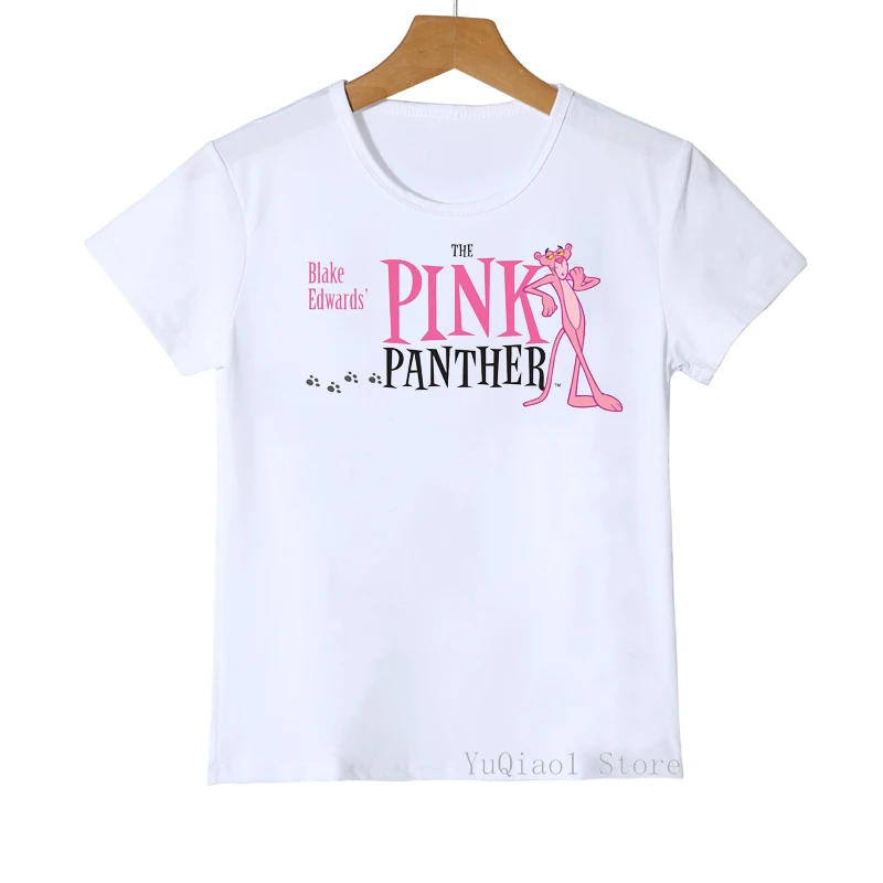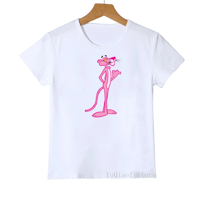 Одежда для маленьких мальчиковдевочек, детская одежда с принтом розовой Пантеры, кавайная футболка в стиле Харадзюку, летние топы, мультяшная Повседневная футболка
