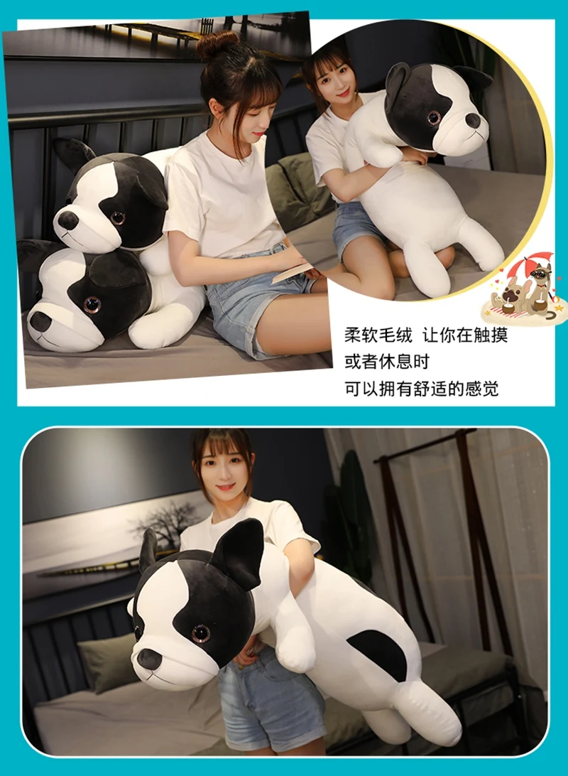 Супермягкие плюшевые игрушки в виде французского бульдога, 1 шт., 80100120 см, набивные хлопковые Симпатичные лежачие собаки, детские подарки для девочек
