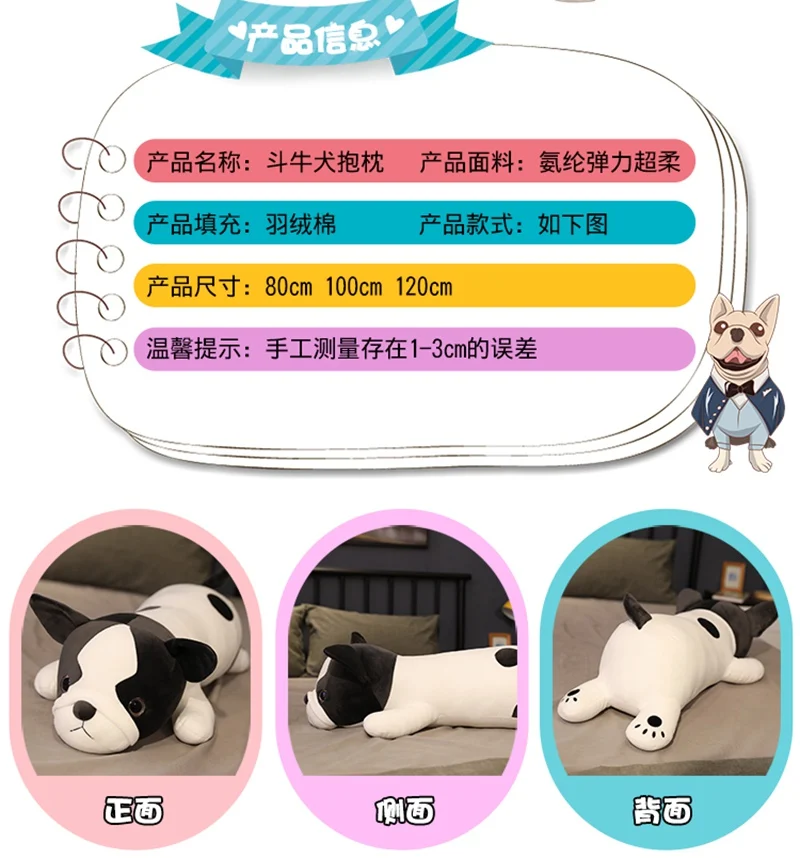 80-120 см лежащий Французский бульдог, плюшевые игрушки, укомплекто...