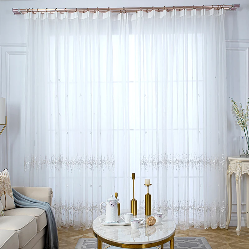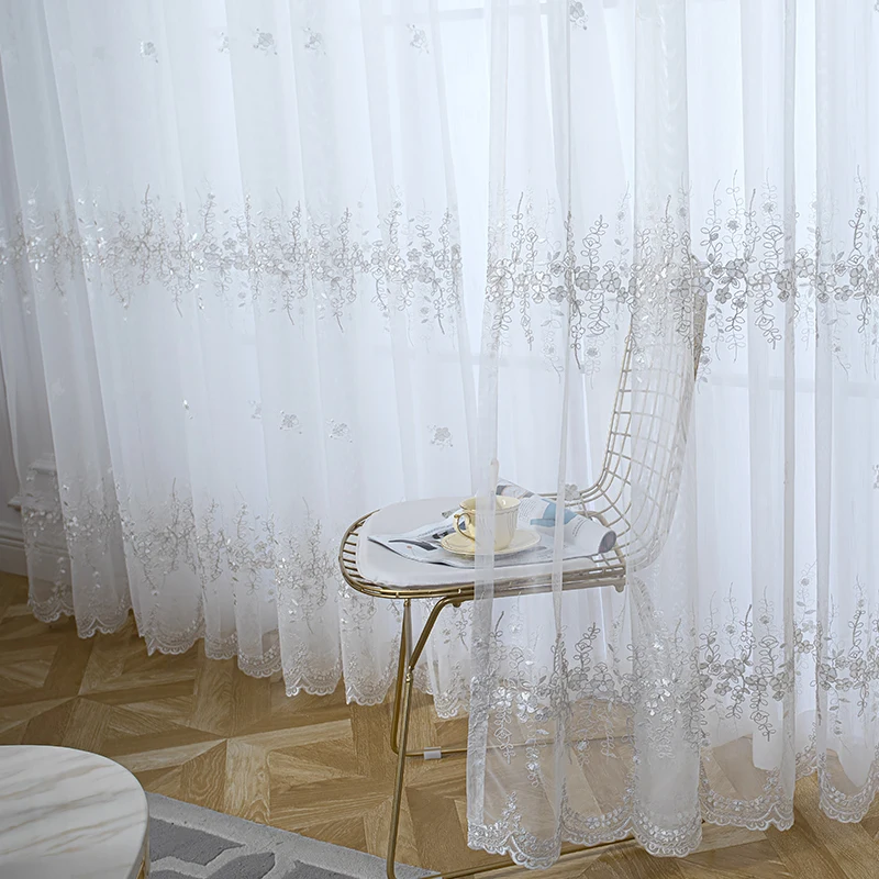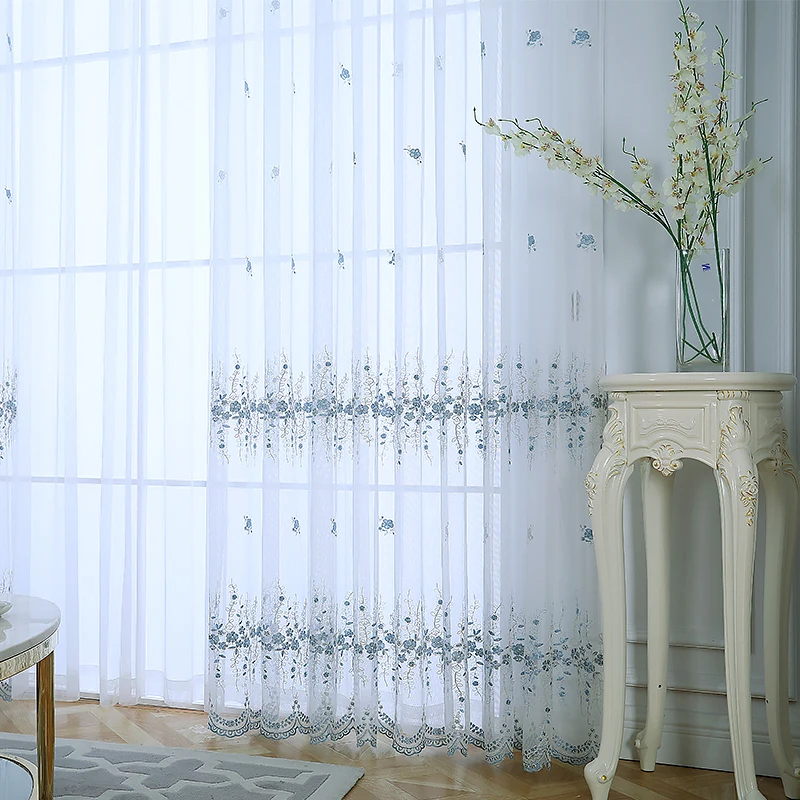 Белые тюлевые шторы с вышивкой в Корейском стиле для гостиной, голубые сплошные шторы для спальни, оконные занавески S121 C