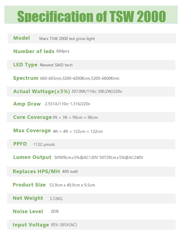 Светодиодсветильник лампа полного спектра Mars Hydro TSW, лампа для овощей, цветов, тент для выращивания растений в доме, многоразмерная, 2000 Вт