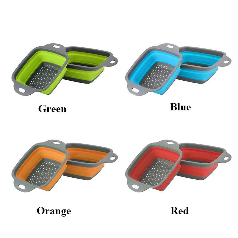 2 шт.компл. складной силиконовый дуршлаг корзина для мытья фруктов овощей квадратная Складная сливная корзина кухонные инструменты