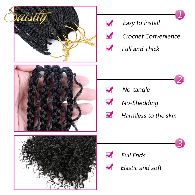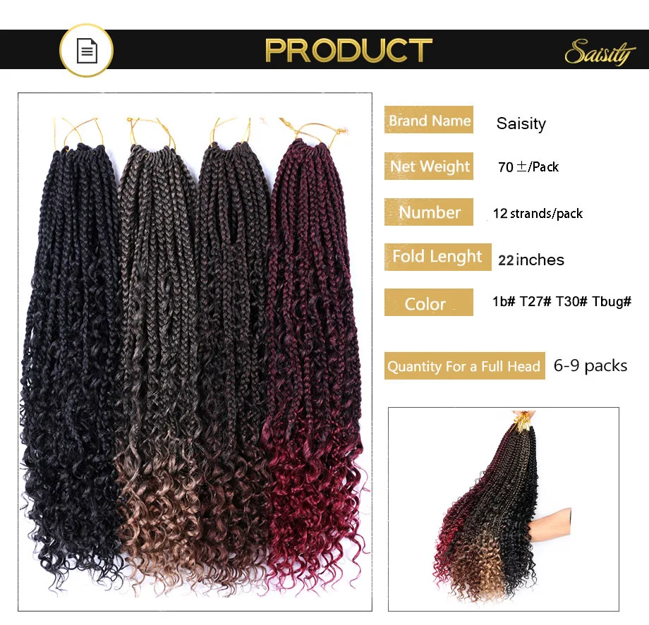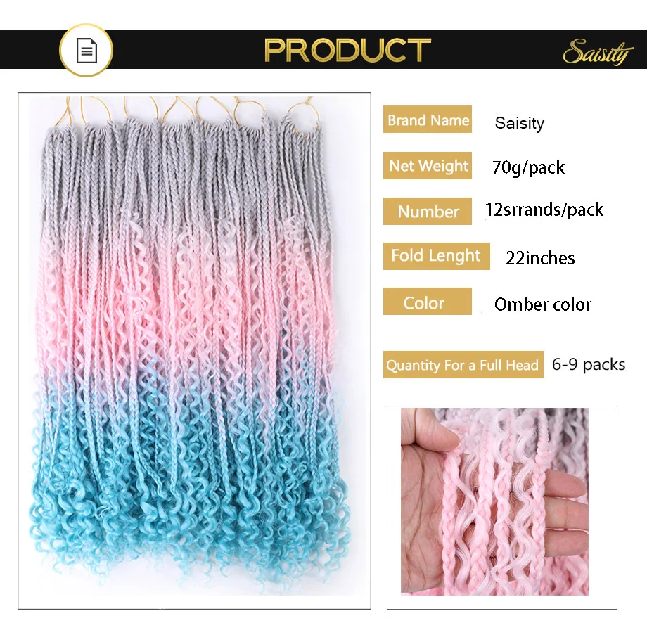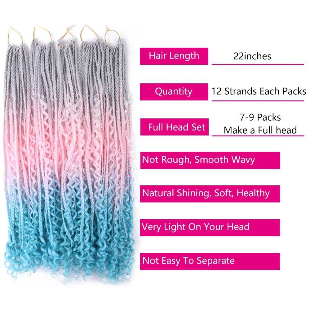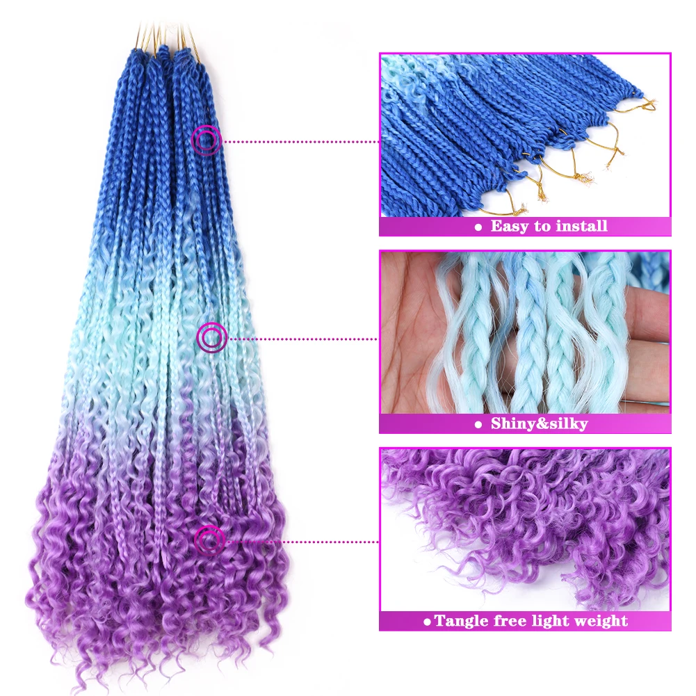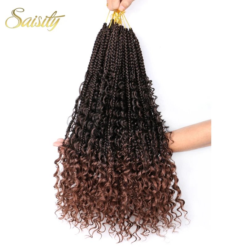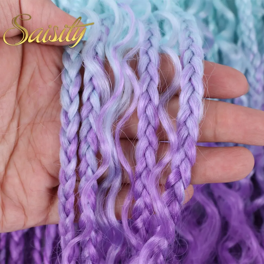 Искусственные волосы с эффектом омбре, с секущимися концами, в богемной коробке, плетеные волосы