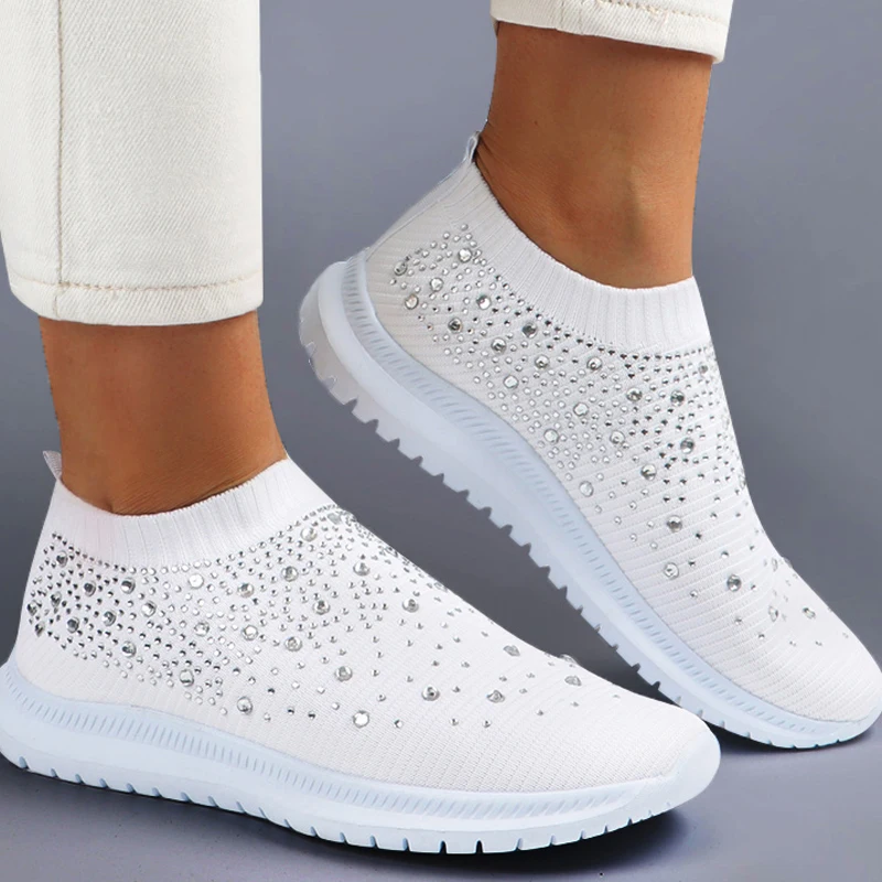 Кроссовки женские, дышащие, со стразами, до щиколотки, обувь на пло...