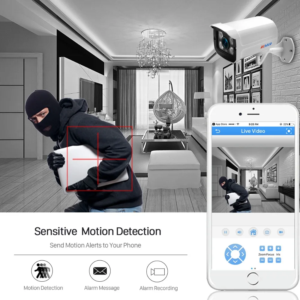 Обнаружение движения через электронную почту или мобильное уведомление.Настройка определенной зоны обнаружения движения и Настройка чувствительности обнаружения движения.