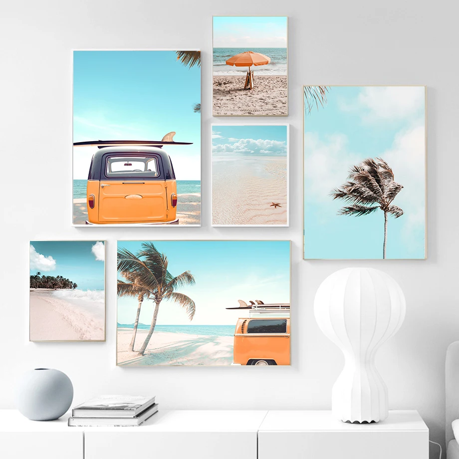 Морской пляж розовый зонтик автомобиль кокосовое дерево настенная К...