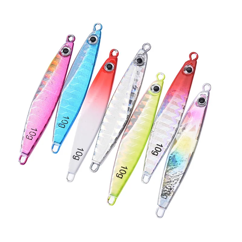 Описание:100% новый и высокое качествоТип: джигВес: 10 гЦвет: синий, красный, Радужный, розовый, серебристый, флуоресцентный желтый, серебристо-красныйПосылка включает в себя:1 шт. х джиг, приманка для рыбалки