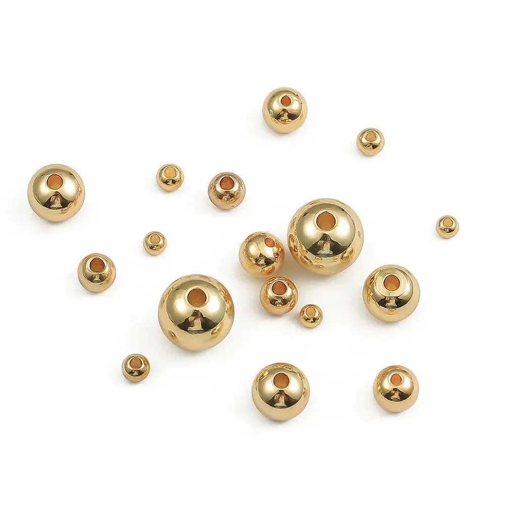 Позолоченные круглые бусины-разделители 18 карат, Шариковые бусины, медные бусины россыпью для изготовления ювелирных изделий своими руками, фурнитура, аксессуары 2,534568 мм