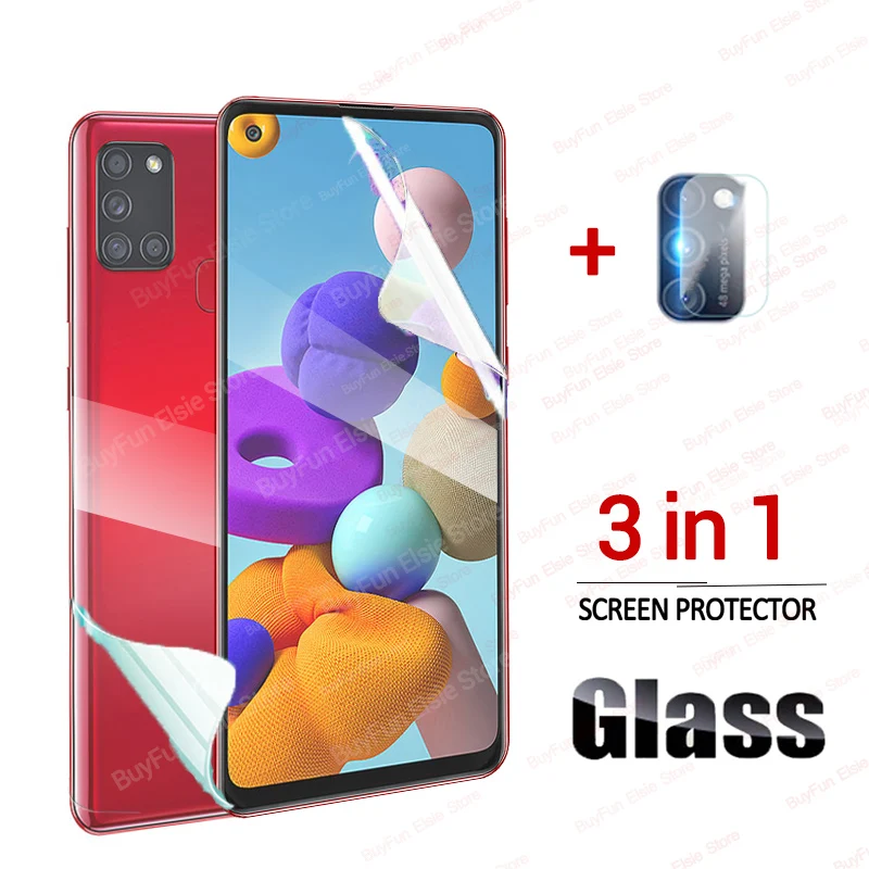 Гидрогелевая пленка 3 в 1 для Samsung Galaxy A21S, Защитная пленка для экрана камеры Samsung Z Flip A21 A90 5G, безопасная задняя пленка, не стекло