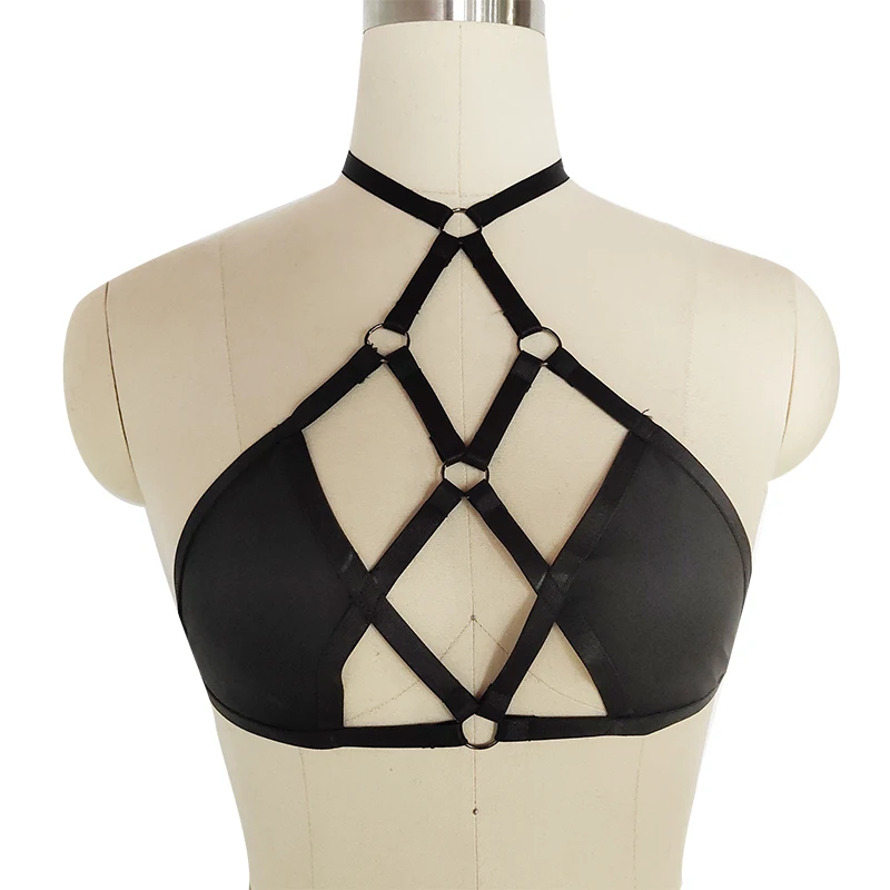 Женский эластичный бюстгальтер, сетчатая портупея, уличный, в готич...
