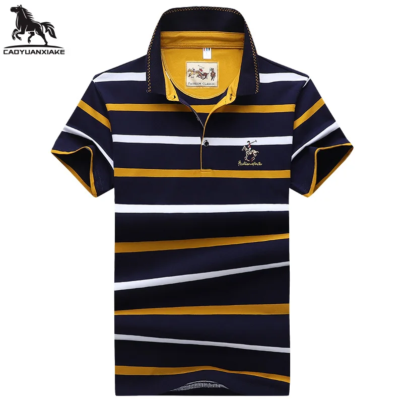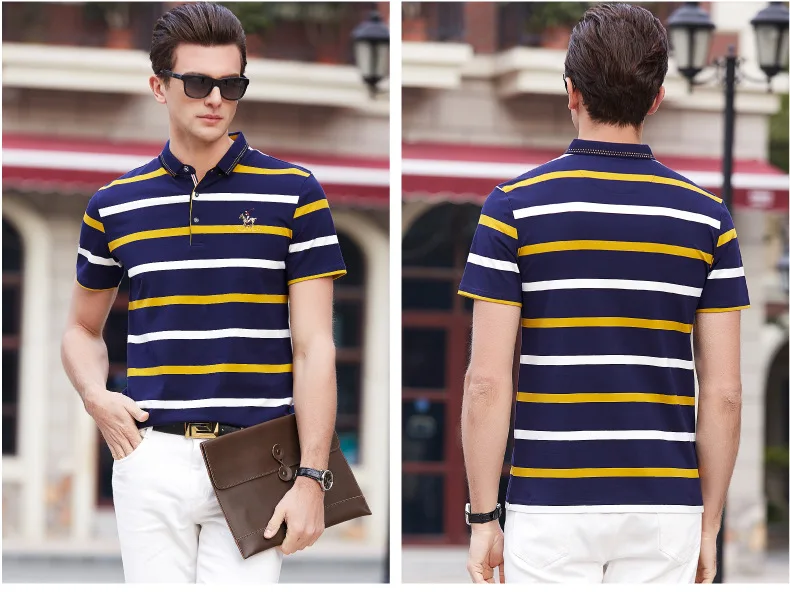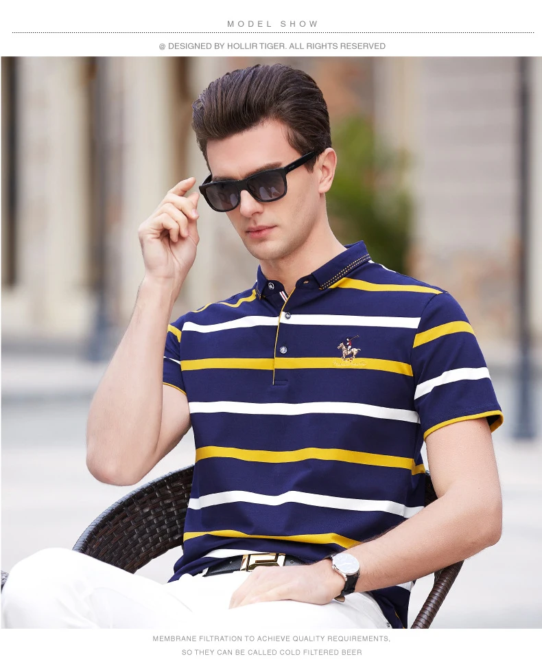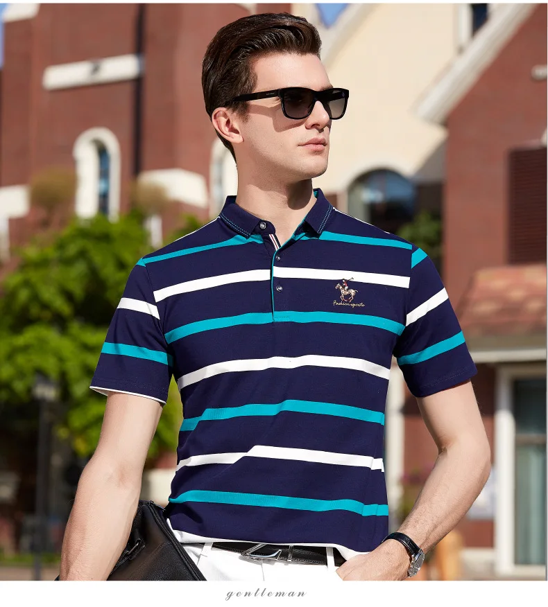 Рубашка-поло мужская с коротким рукавом, рубашка-поло с вышивкой в полоску, деловой Повседневный стиль, лето 3631