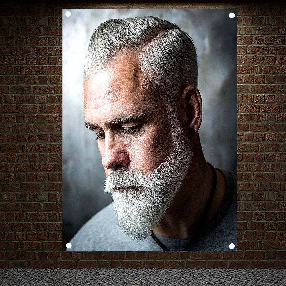 Мужская прическа с короткими шипами в виде бороды, украшение для парикмахерской, постер для дома, вывеска, гобелен, баннер, флаг, настенное искусство, Картина на холсте