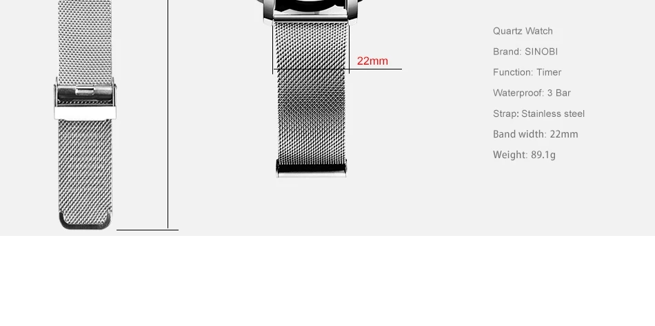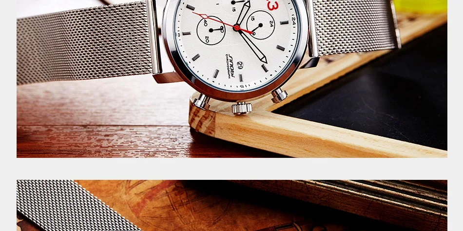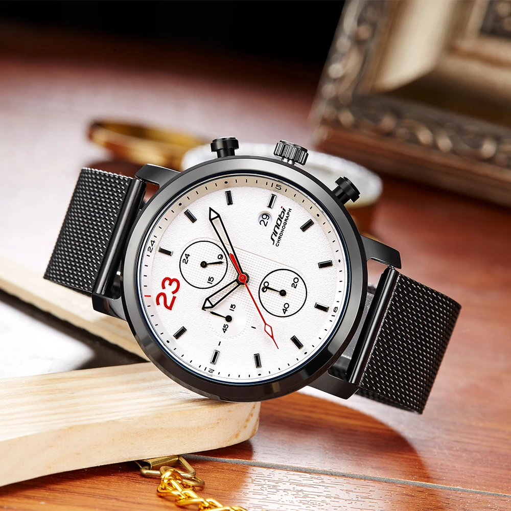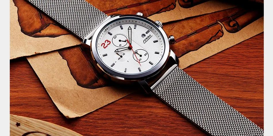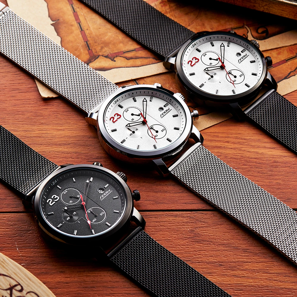 Часы-хронограф SINOBI, модные мужские наручные часы с миланским сет...
