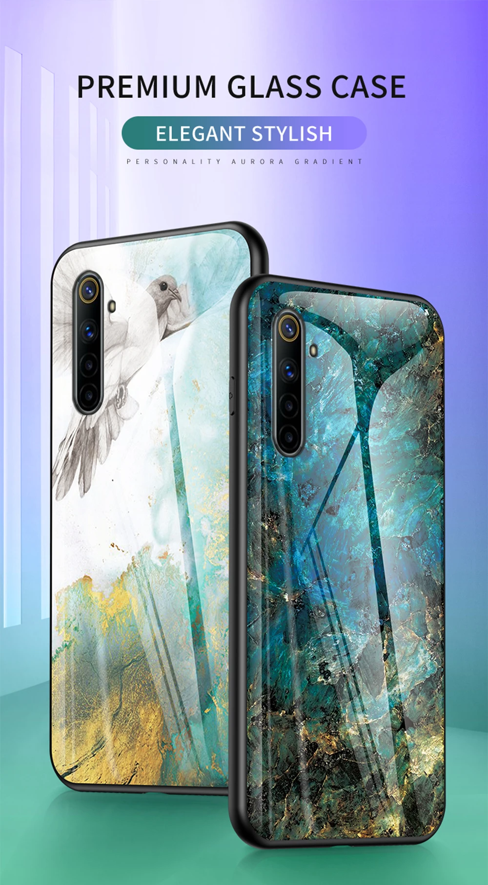 Feature BMarble Tempered Glass Back Cover Case For realme 6 Pro