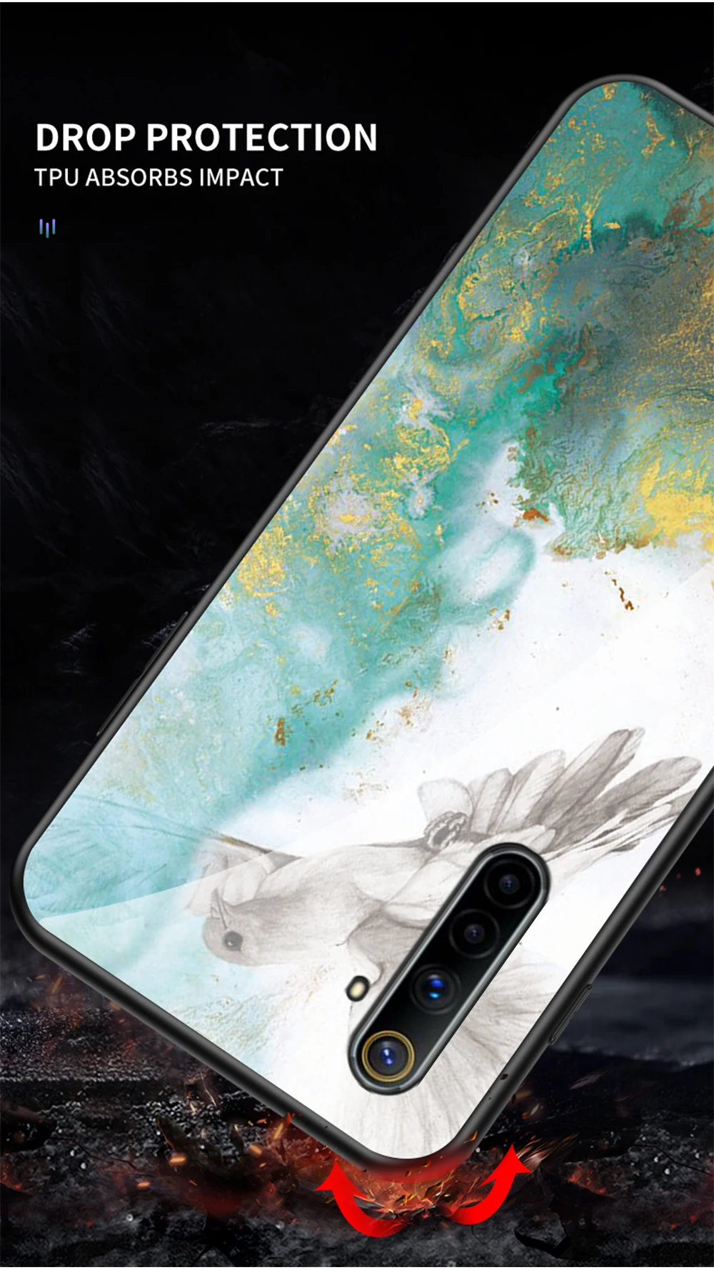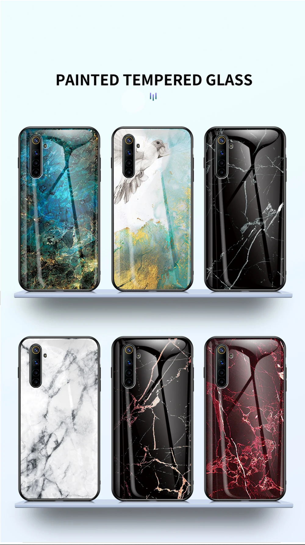 Чехол TeppKa для Realme 6S, противоударный, из закаленного стекла с мраморным рисунком, с силиконовой рамкой, жесткая задняя крышка для Realme 6 pro 6i