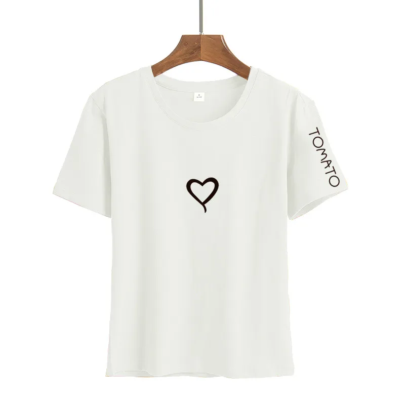 Футболка женская, с вышивкой и сердцем, повседневная, белая, лето 2020