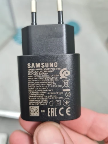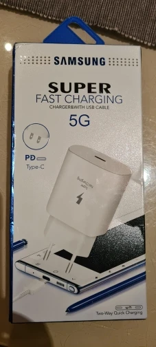 Супер зарядное устройство и USB-кабель типа C к USB типа C. Супер быстрое зарядное устройство для моего Samsung Galaxy S20 Ultra. Это выглядит точно так же, как оригинальное зарядное устройство. Прибыл через полторы недели во францию. Я рекомендую Я не связался с продавцом.