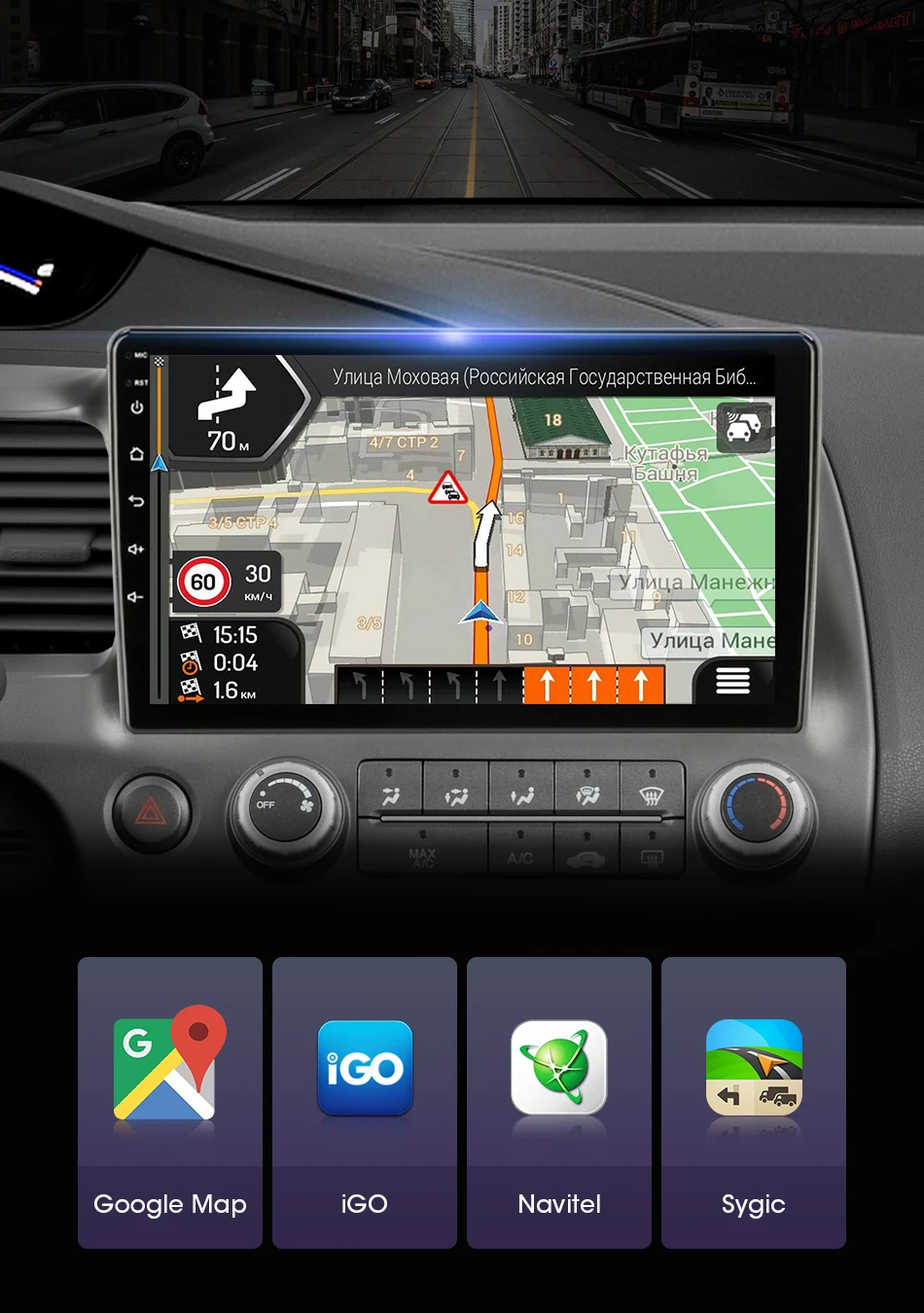 Поддерживает почти все приложения карты. Перед отправкой ваших любимых продуктов, мы установим для вас последнюю автономную карту вашей страны, и карта будет обновляться через регулярные промежутки времени. Конечно, вы также можете использовать онлайн-карты.
